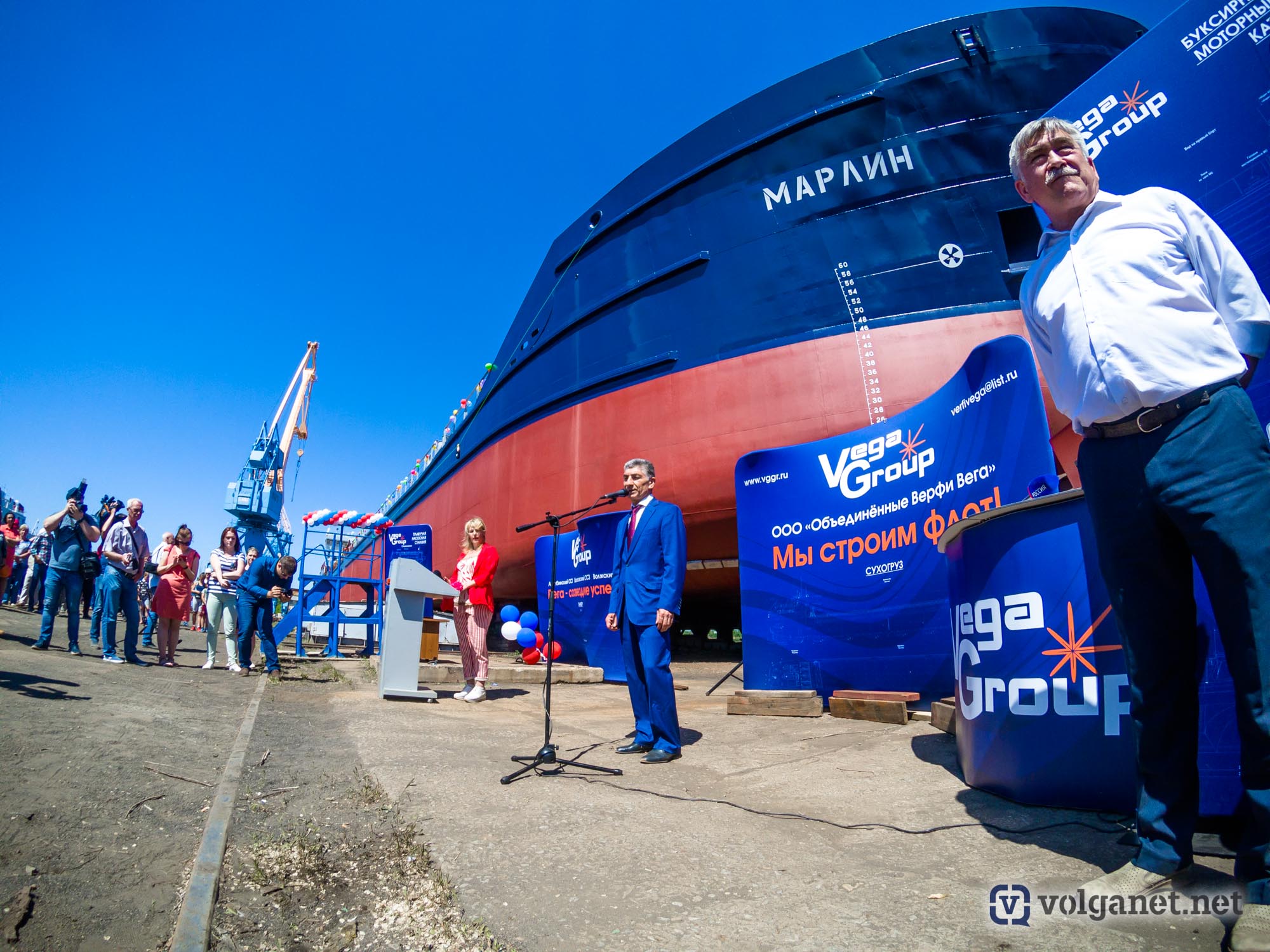 В среду, 29 мая, в Волжском состоялся торжественный спуск на воду химического танкера «Марлин», способного перевозить шесть видов груза, в том числе метанол. Подобный корабль построен Волжским судостроительно-судоремонтным заводом (входит в компанию «Вега групп») впервые.