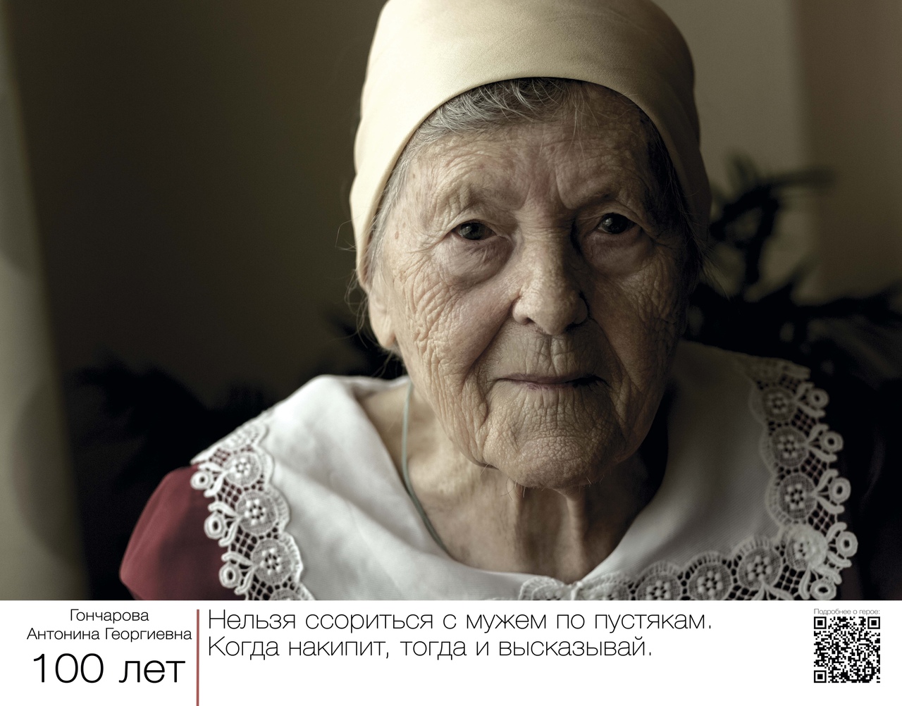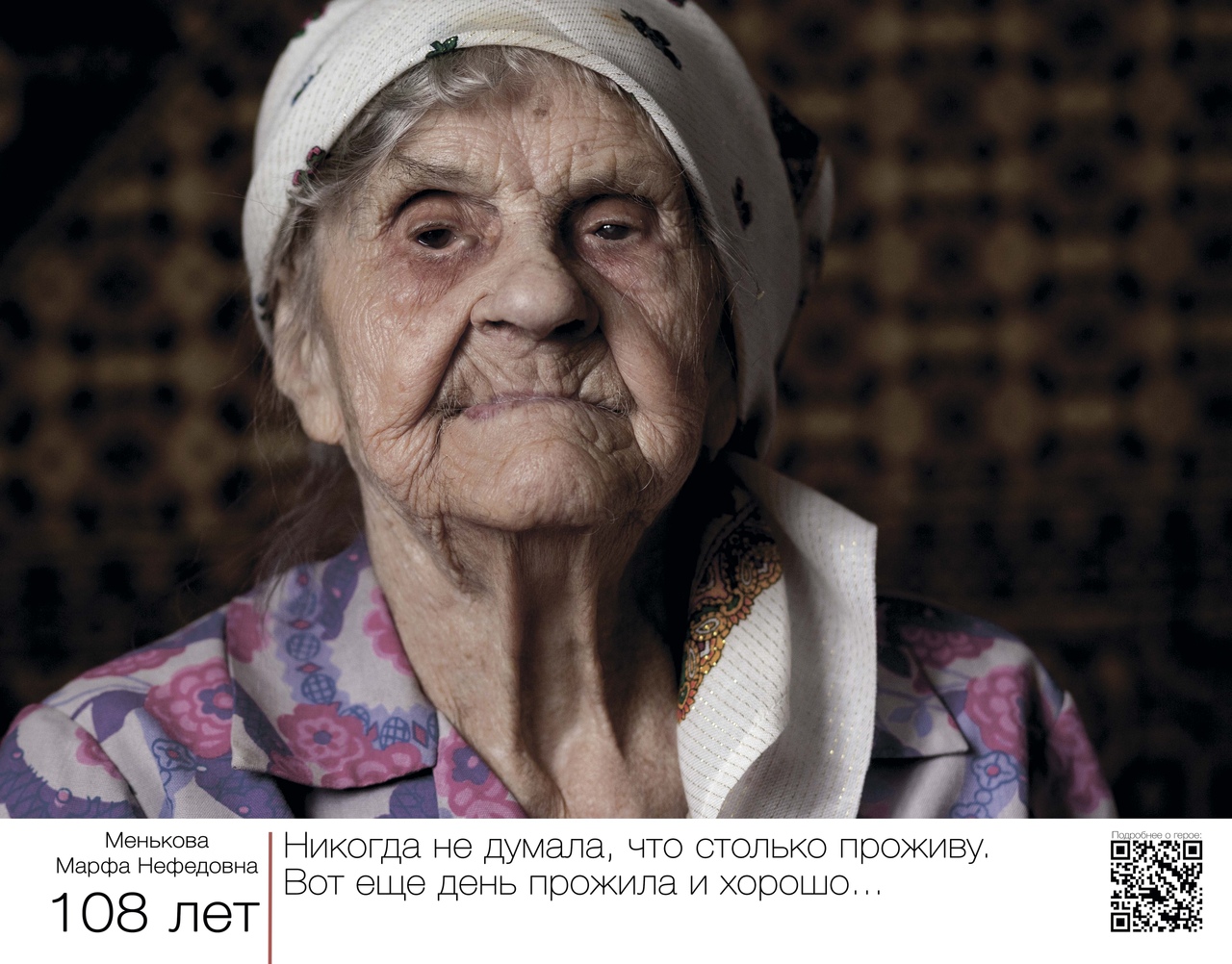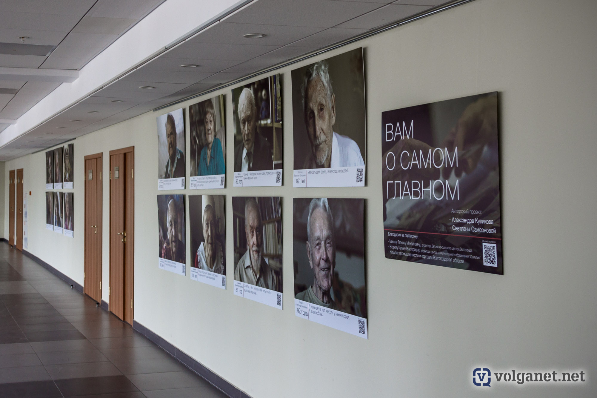 Эти глаза… Мороз по коже, когда всматриваешься в лица людей, которые смотрят на тебя с портретов, собранных в проекте «Вам о самом главном». Авторский экспириенс волгоградской журналистки Светланы Самсоновой и фотографа Александра Куликова не раскрывает секретов долголетия, не советует, как нужно жить. Он заставляет задуматься о том, как прожить так, чтобы в 80, 90 и 100 лет рядом с тобой были любящие люди. Хотя каждый, наверное, найдёт в этом проекте что-то своё.