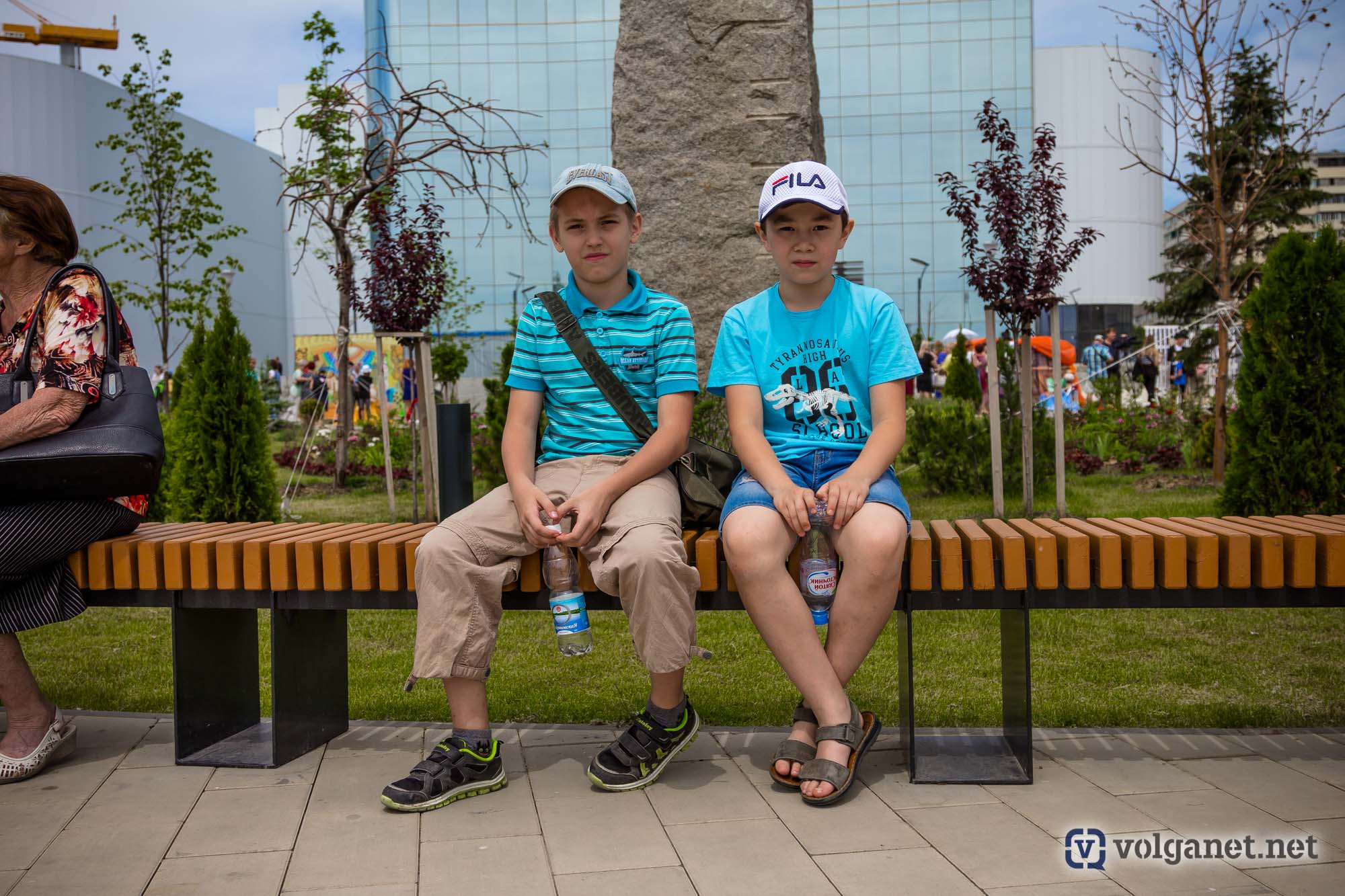 С таким же вопросом и вопросом о том, какой сегодня день, мы подходили ко многим гуляющим на празднике. Дети, которых было множество в сквере – пришкольные лагеря привели воспитанников, с ответами на вопрос затруднялись. Порадовали Артём и Миша, которые не только знали, что 6 июня родился Пушкин, но и смогли припомнить строки «У Лукоморья дуб зелёный…».