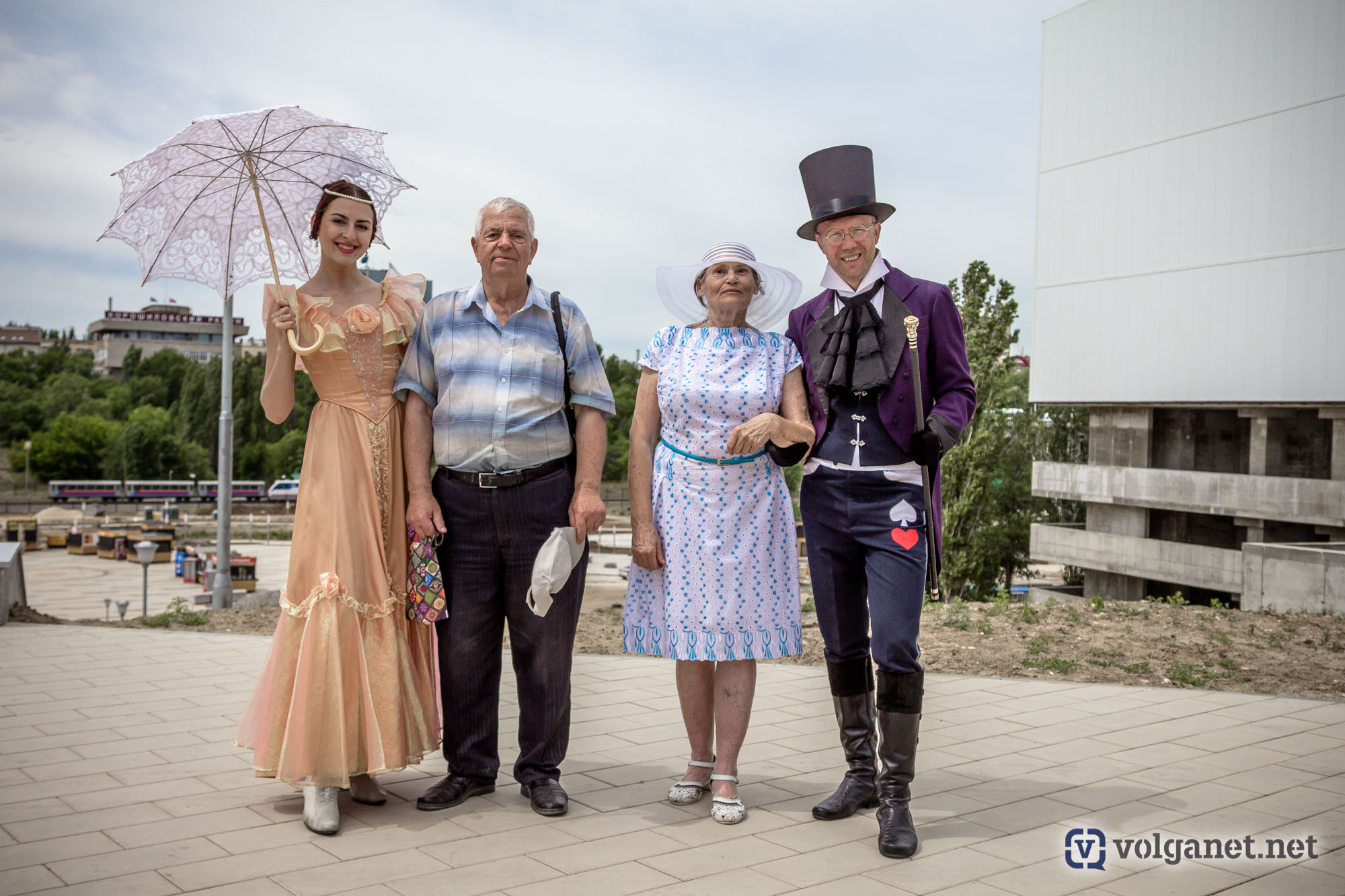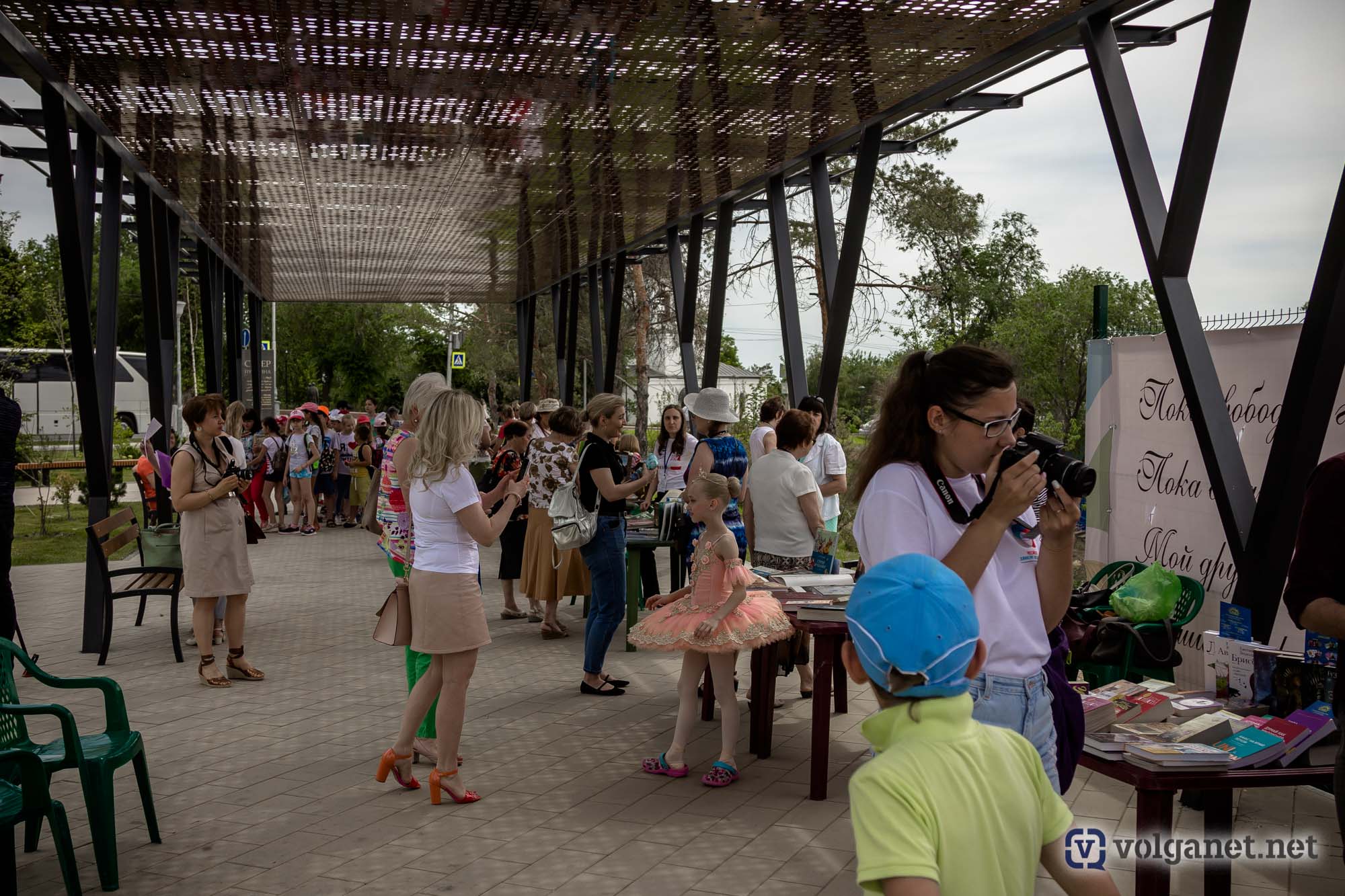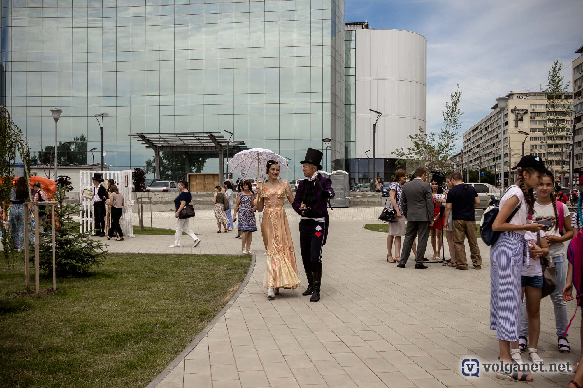 Вдоль аллей расположились несколько фотозон, где желающие фотографировались либо вместе с героями пушкинских сказок, либо вместо них, но – в соответствующей атмосфере. По аллеям чинно расхаживали дамы с кавалерами – актёры Волгоградского музыкального и Волгоградского молодёжного театров – в костюмах эпохи великого поэта.