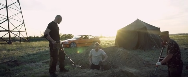 В кадре появляется дорожный полицейский, который в ответ на предложение «договориться» ставит гонщика перед выбором: либо один день на раскопках в составе поисковой экспедиции, либо лишение прав и велосипед вместо машины. Гонщик выбирает раскопки.