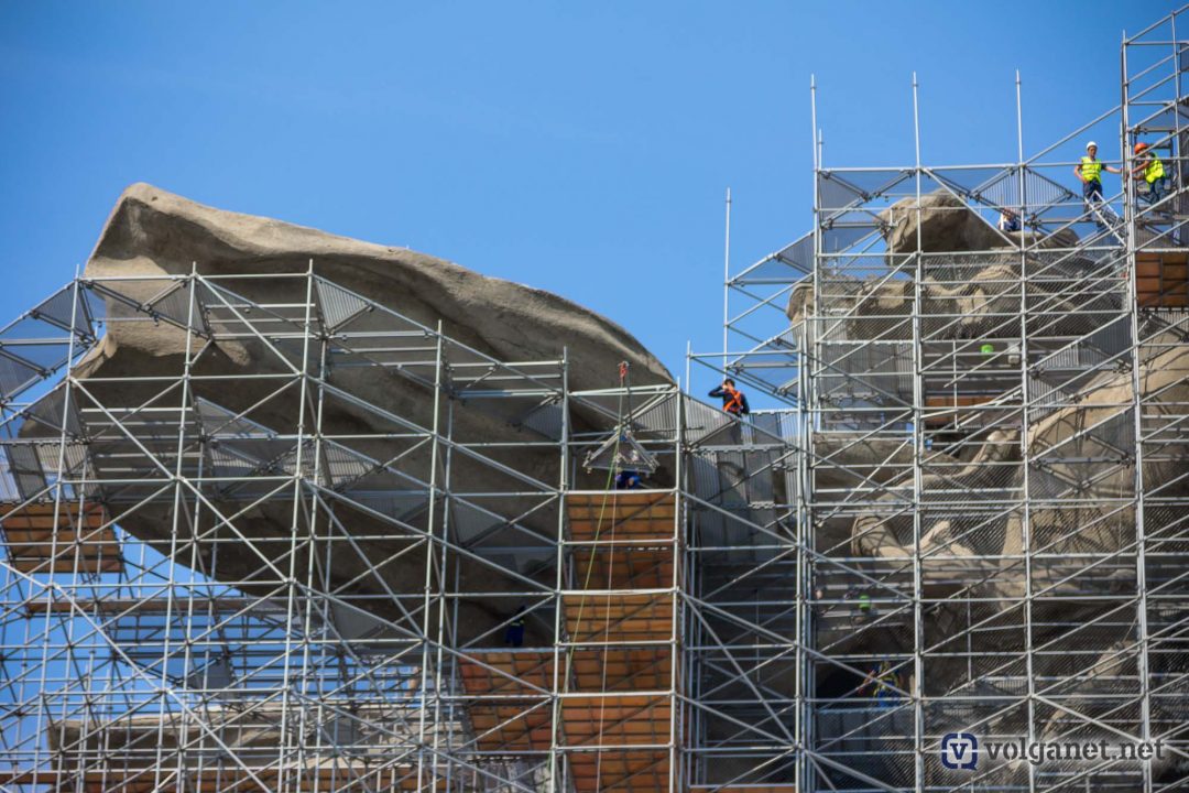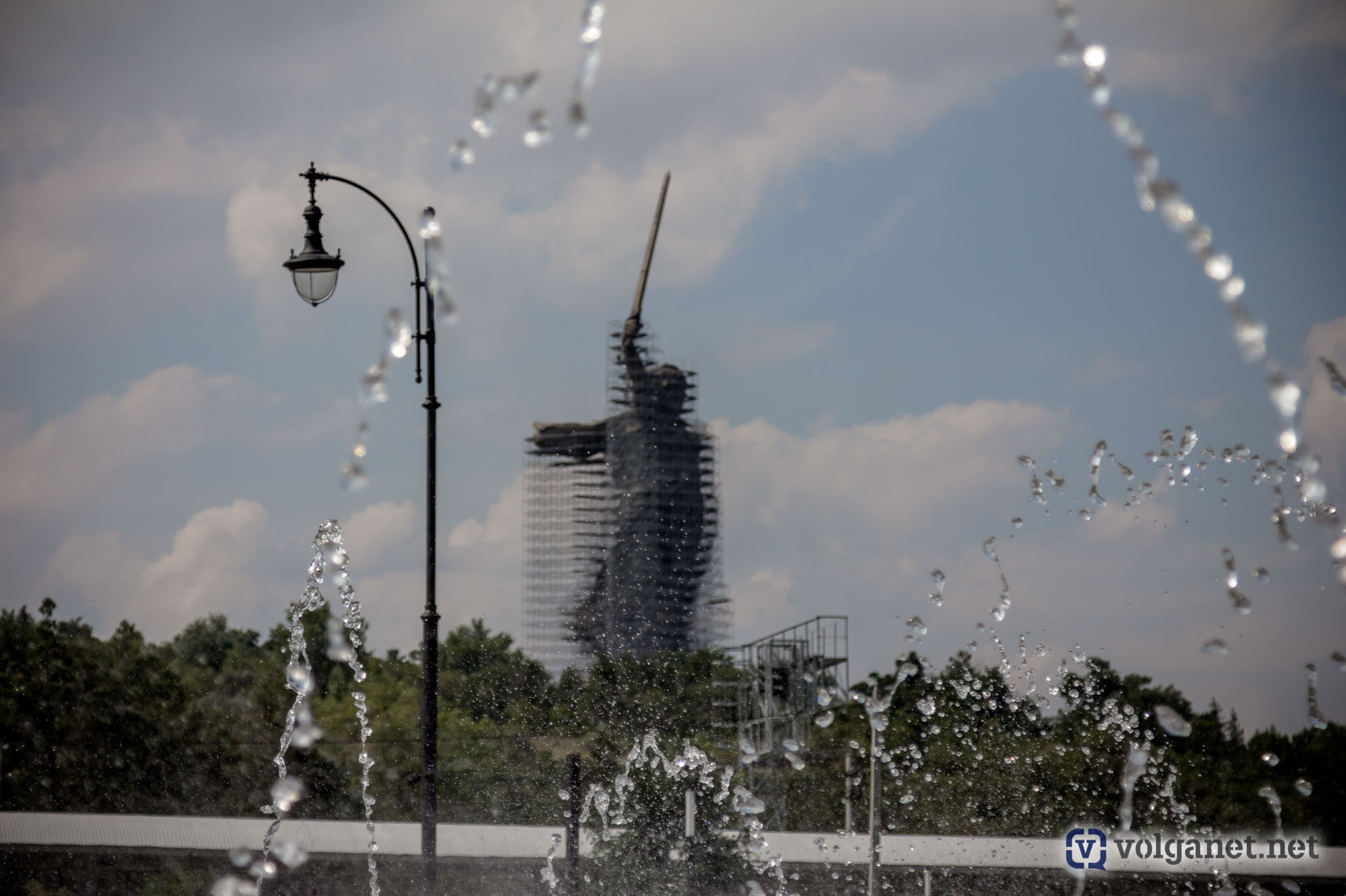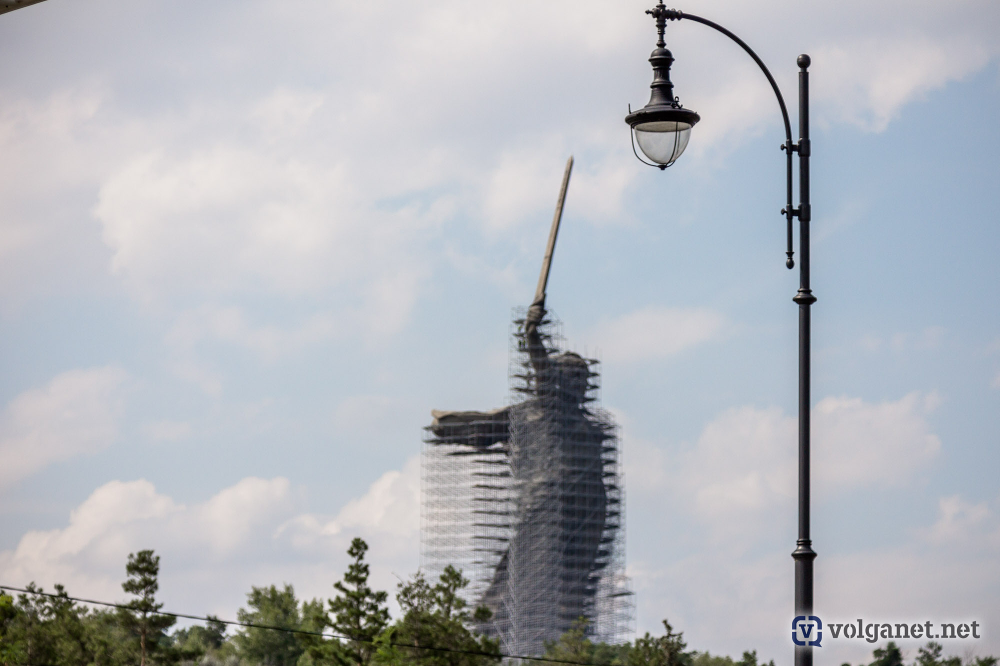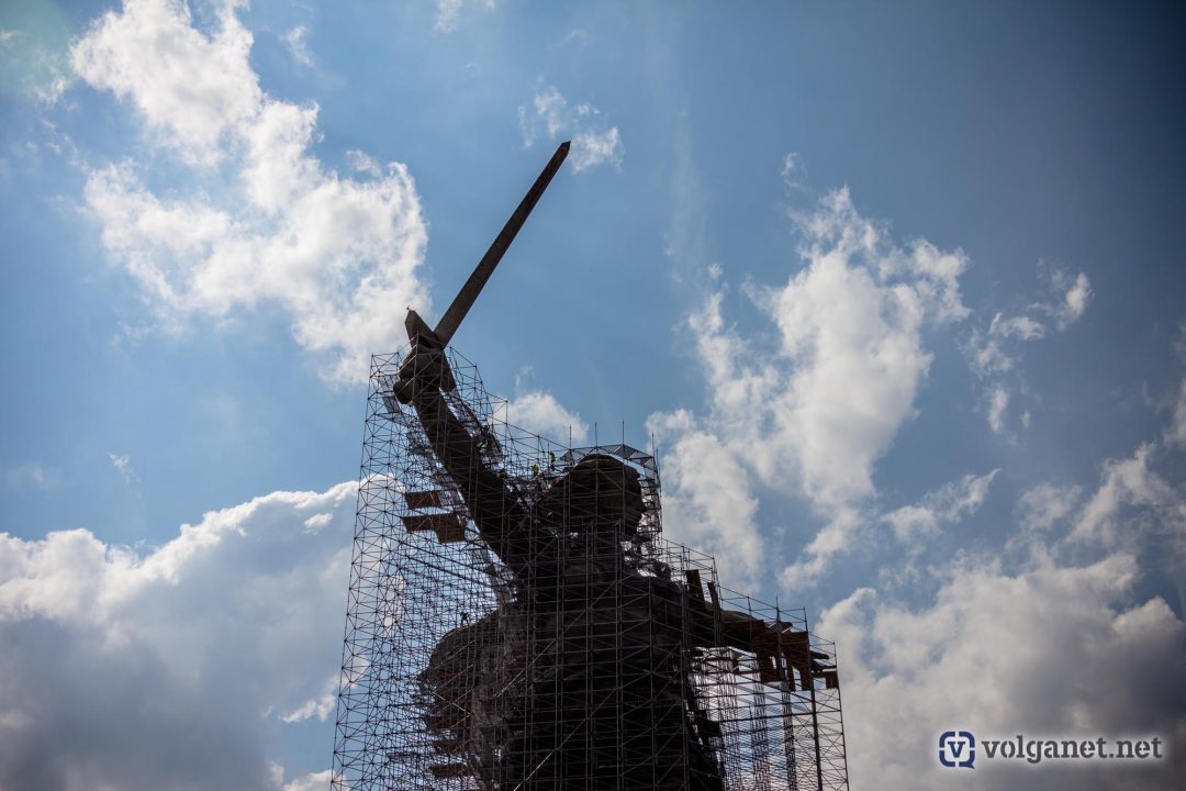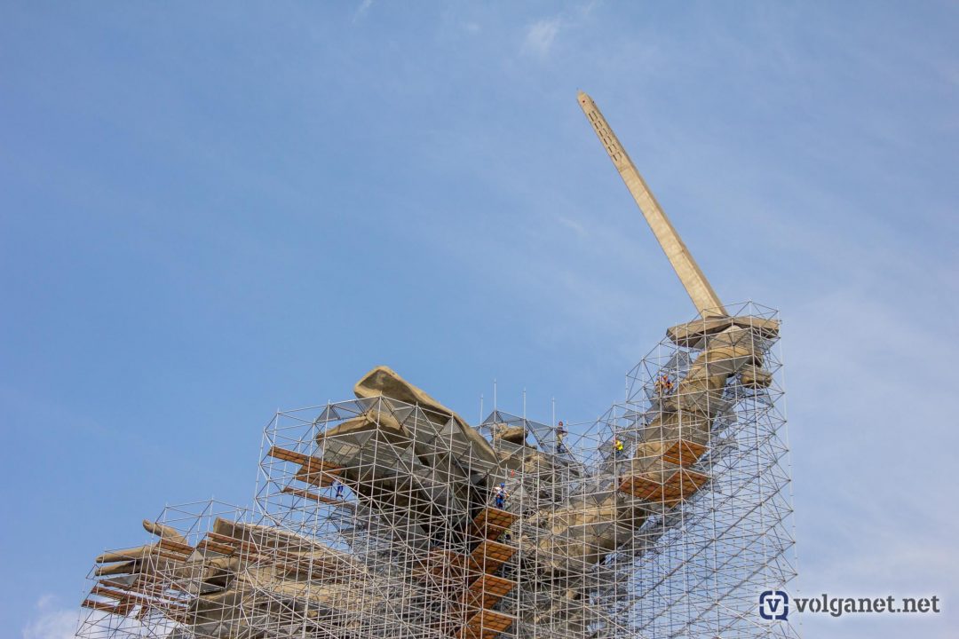 Леса укрыли 52-метровую статую полностью – без железной паутины остался лишь 33-метровый меч. Реставраторы уже приступили к работе – до ноября подрядчику предстоит очистить каждый сантиметр поверхности монумента от полувекового налёта грязи. В итоге Родина-мать посветлеет и станет такой же, какой была 52 года назад.