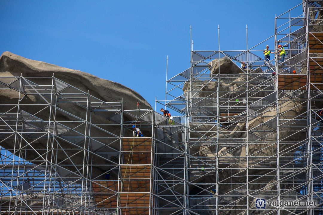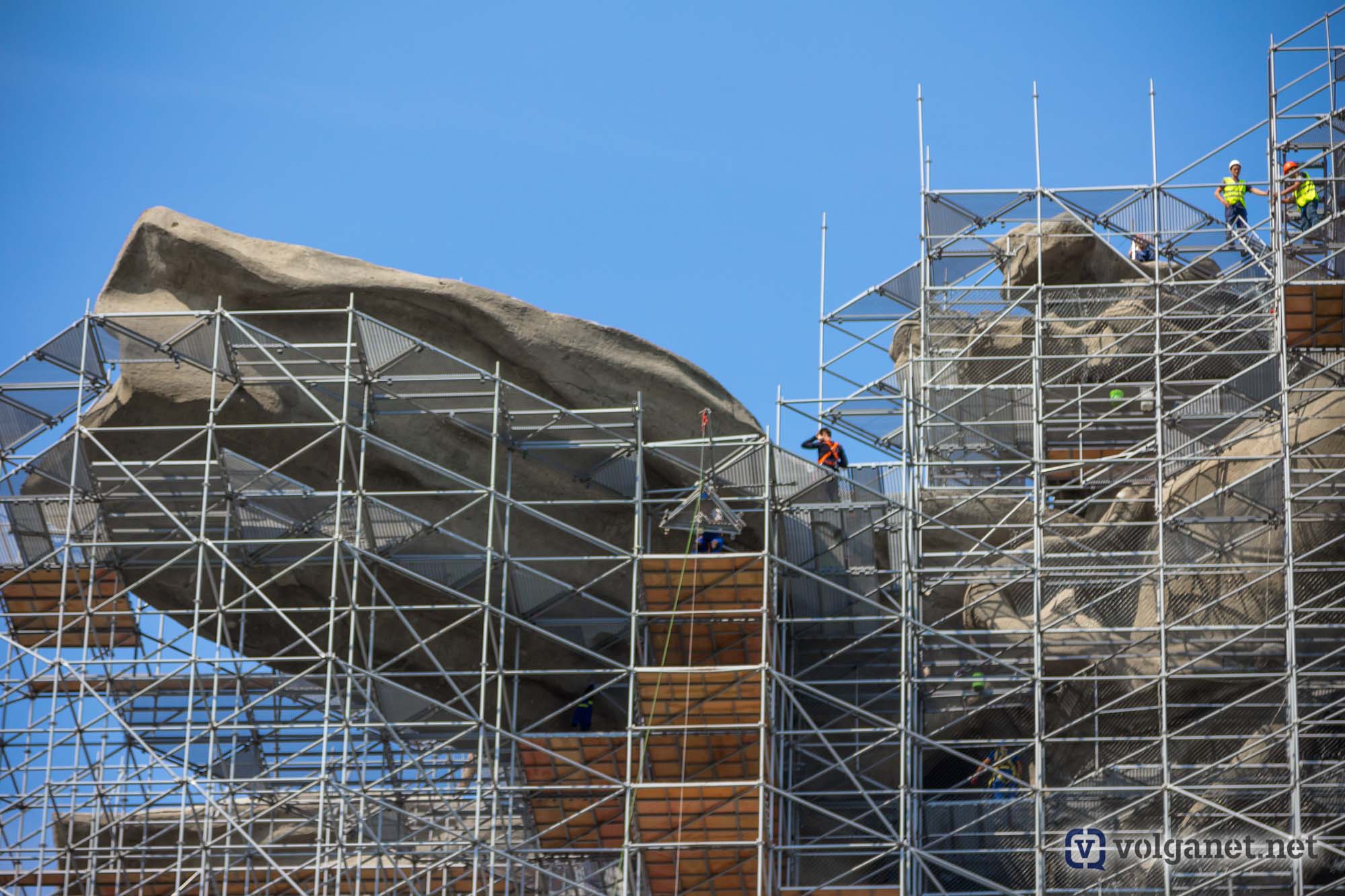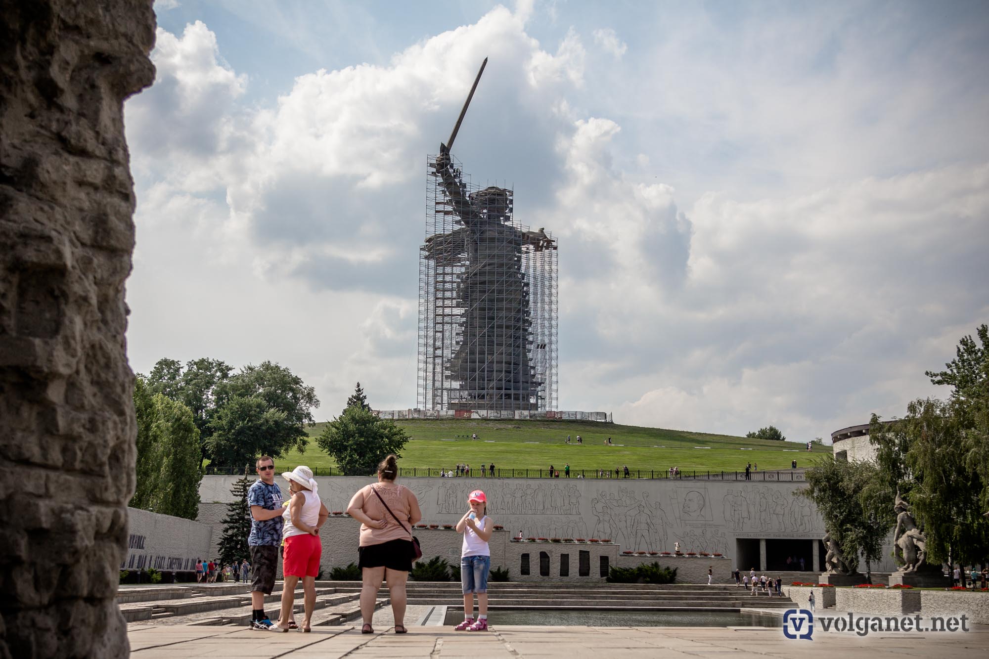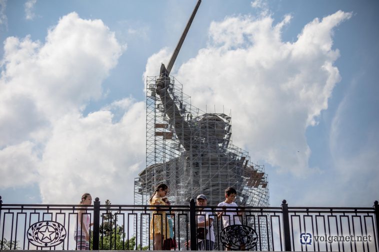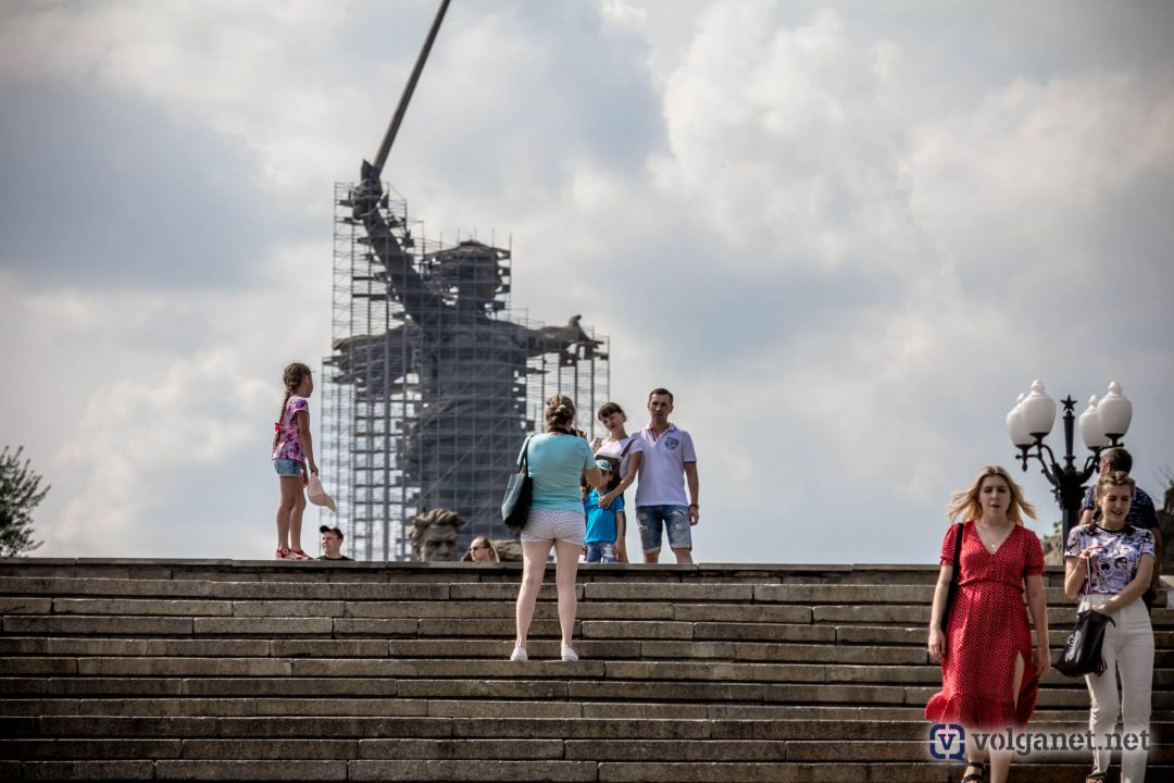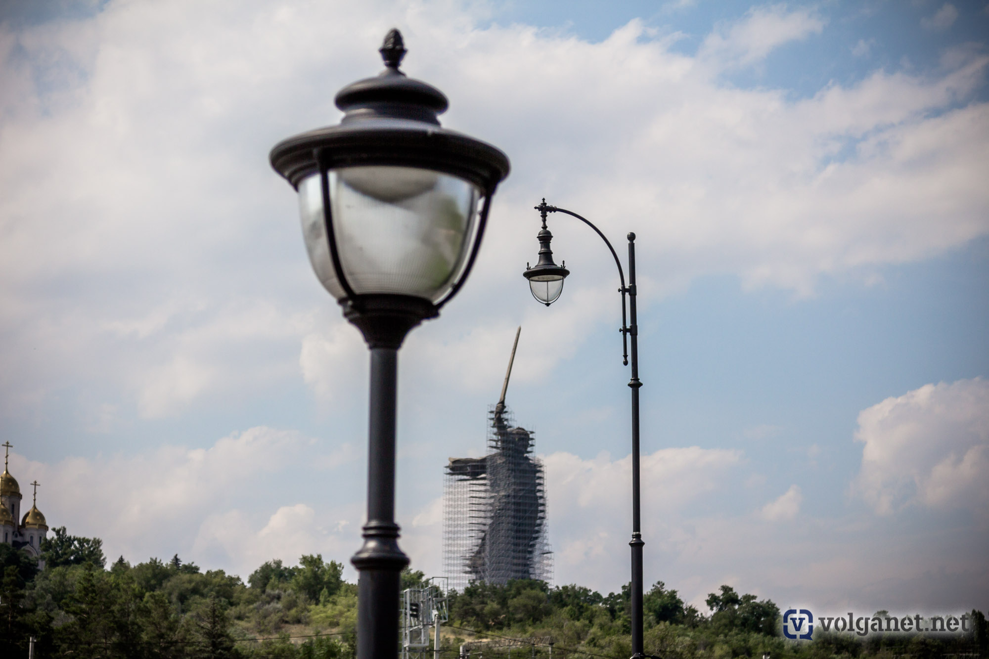 Леса укрыли 52-метровую статую полностью – без железной паутины остался лишь 33-метровый меч. Реставраторы уже приступили к работе – до ноября подрядчику предстоит очистить каждый сантиметр поверхности монумента от полувекового налёта грязи. В итоге Родина-мать посветлеет и станет такой же, какой была 52 года назад.