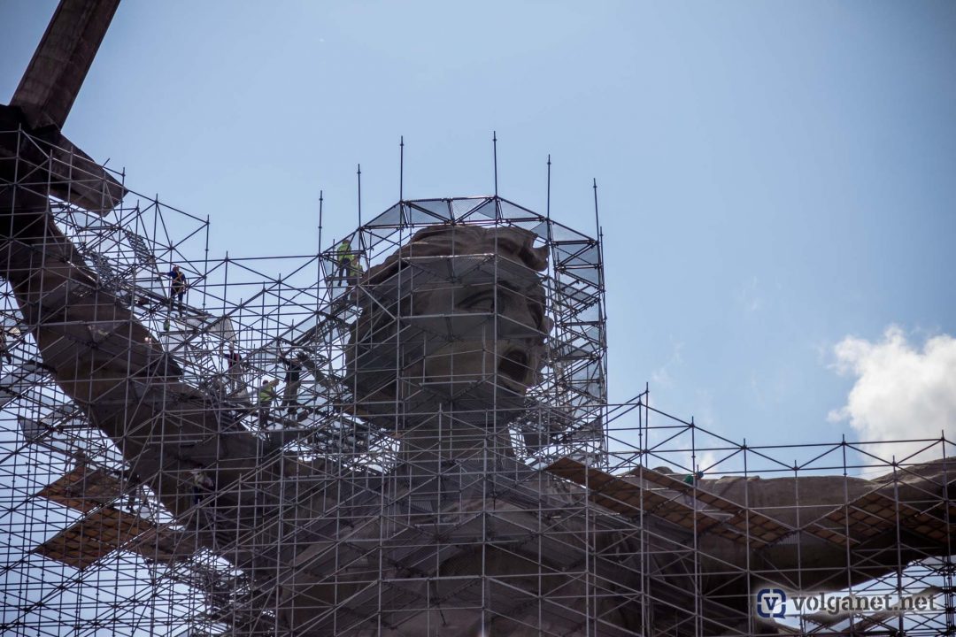 Напомним, обычные леса для сложного объекта не подходили: их просто было не к чему крепить, да и парусность не позволила возводить обычную конструкцию. Тогда было принято решение заказать эксклюзивный стальной «наряд» для скульптуры. Его изготавливали на заводе в Подмосковье, стоимость лесов обошлась в кругленькую сумму – порядка 60 миллионов рублей. На всю реконструкцию статуи федеральный бюджет выделил 670 миллионов.