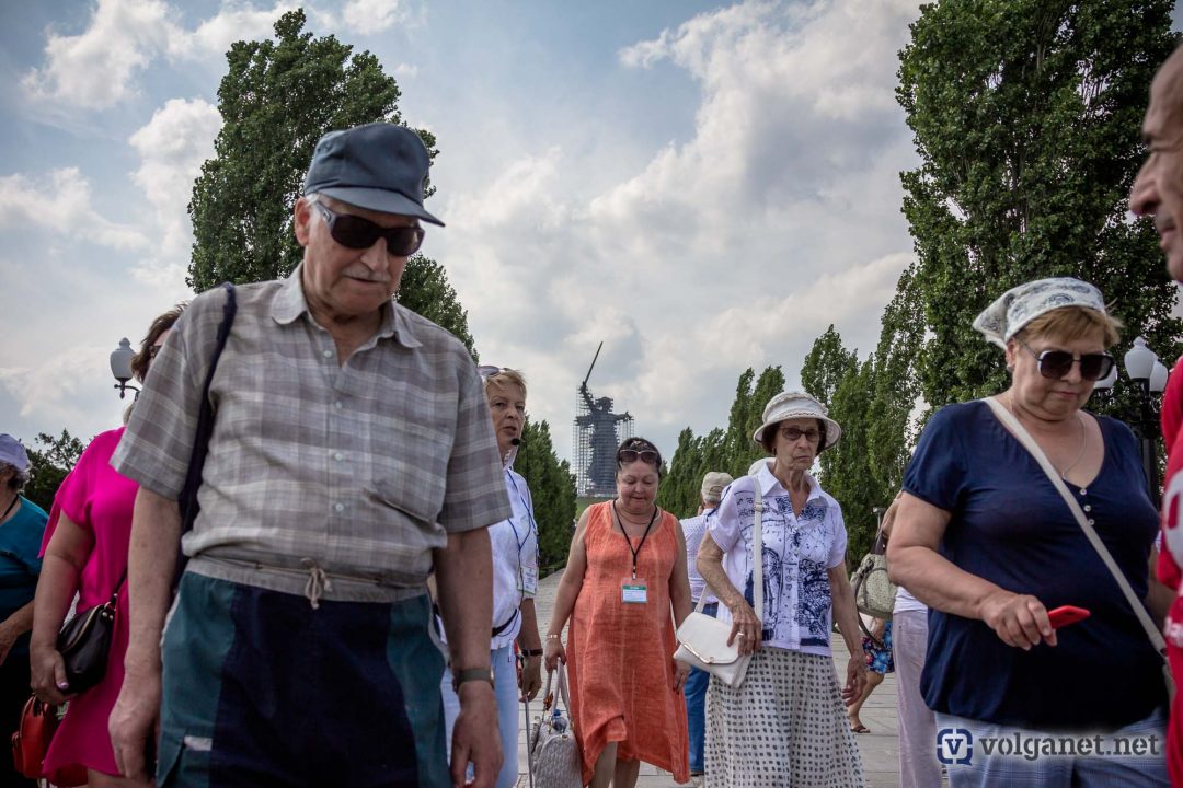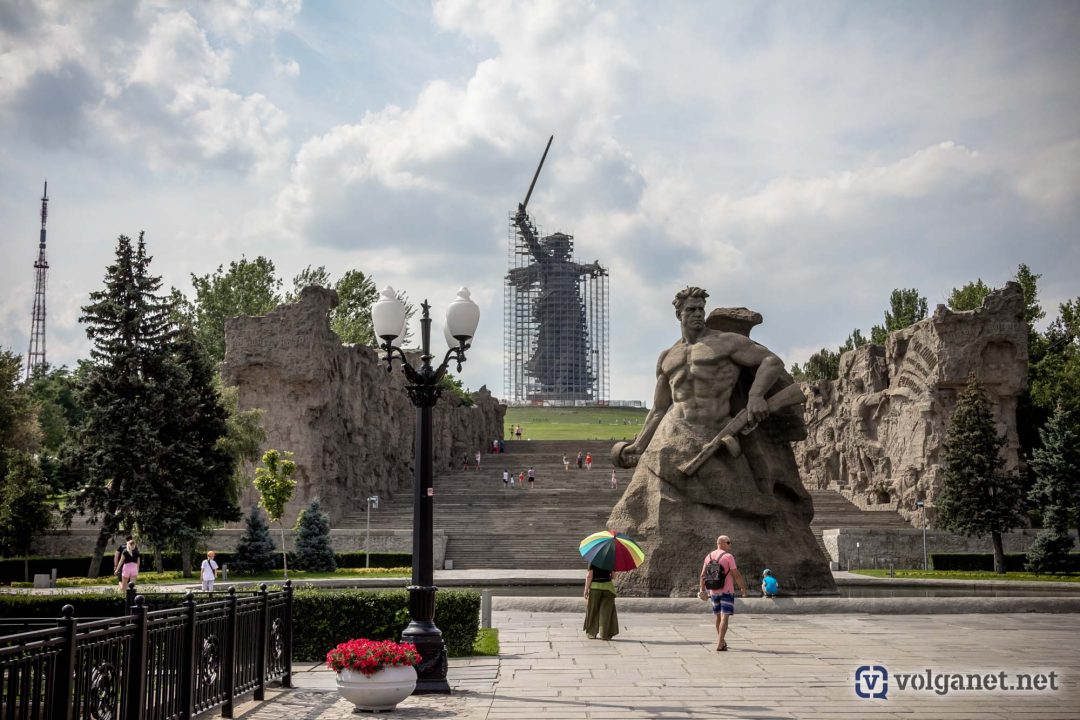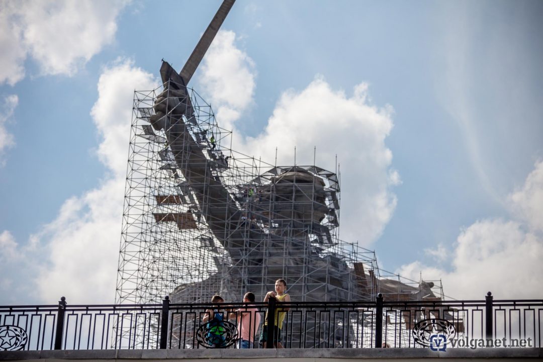 На минувшей неделе завершился самый зрелищный этап реконструкции Родины-матери на Мамаевом кургане. Главный монумент памятника-ансамбля Героям Сталинграда от макушки до пят одели в эксклюзивные, «сшитые» по заказу строительные леса.