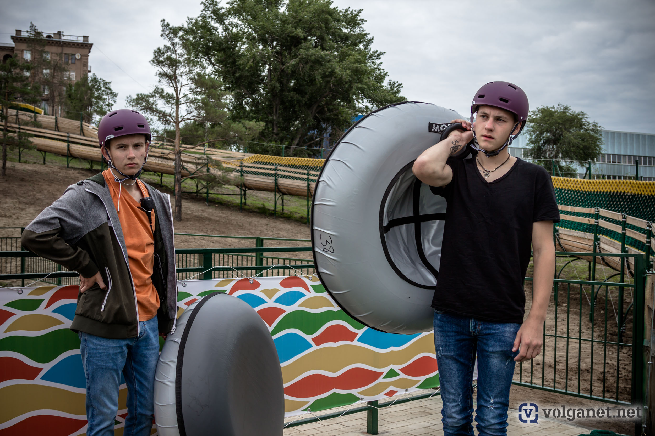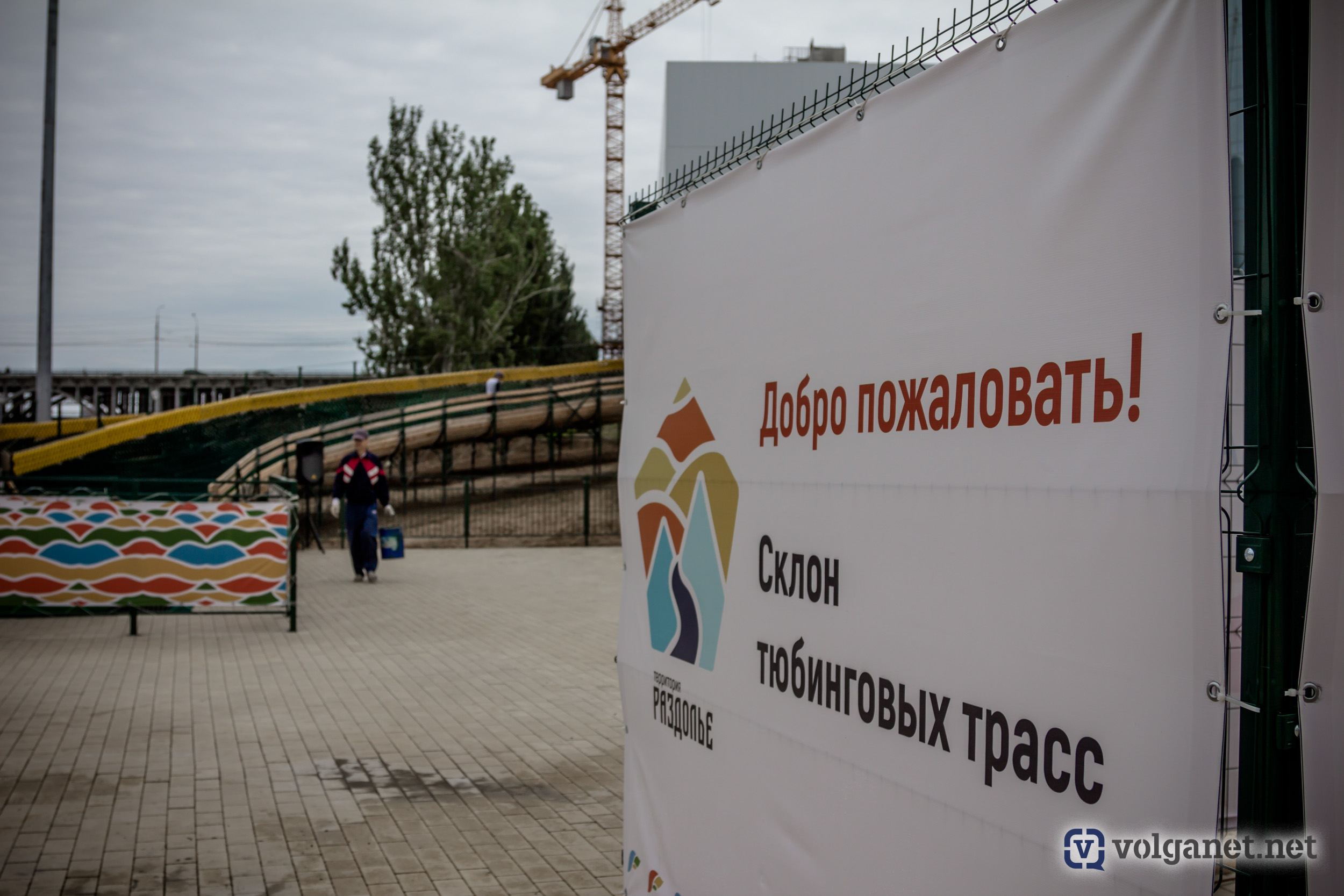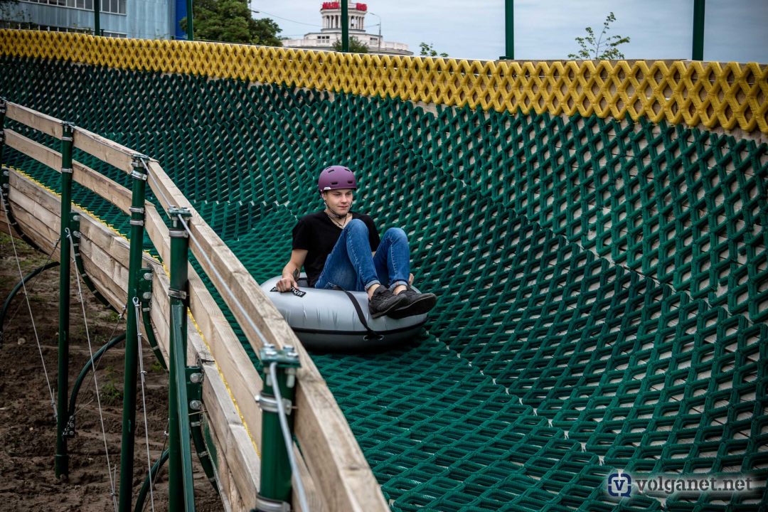 Свершилось! В субботу, 3 августа, в пойме реки Царица начнёт работу тюбинговый склон. А пока специалисты компании-инвестора проверяют надёжность трассы и спускаются по ним на «ватрушках» сами.