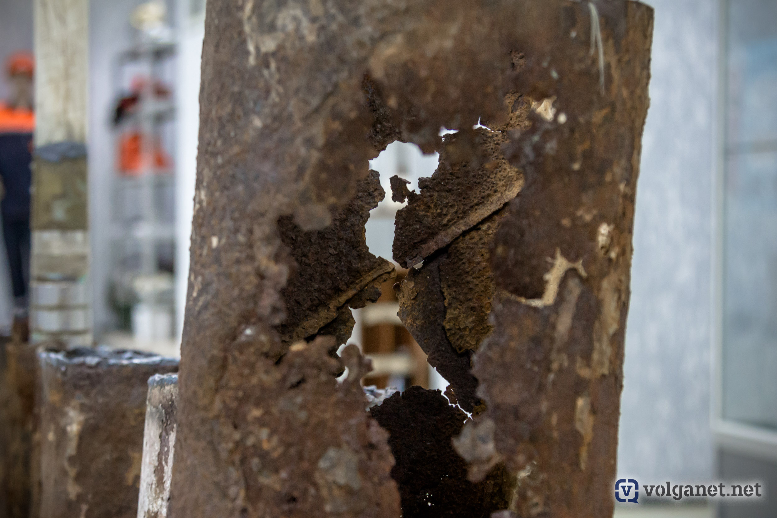 – Эта труба прослужила всего шесть лет, – рассказывает Олег Семёнович. – При температуре горячей воды в 60 градусов выделяется свободно растворённый кислород, что приводит к выпадению солей жёсткости, и в итоге, к износу.