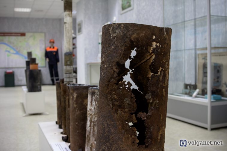– Вот фрагмент фронтальной части жаротрубного котла «Карнавальский», выпущенный в 1869 году, – начал свою экскурсию директор музея, известный всем волгоградцам заслуженный работник ЖКХ Олег Капустин. – Огромный котёл вывезли по контрибуции из Германии. Долгое время он стоял в одной из котельных на поселке Судоверфь. Потом сам котёл устарел и был списан, я же попросил вырезать часть для нашего музея.