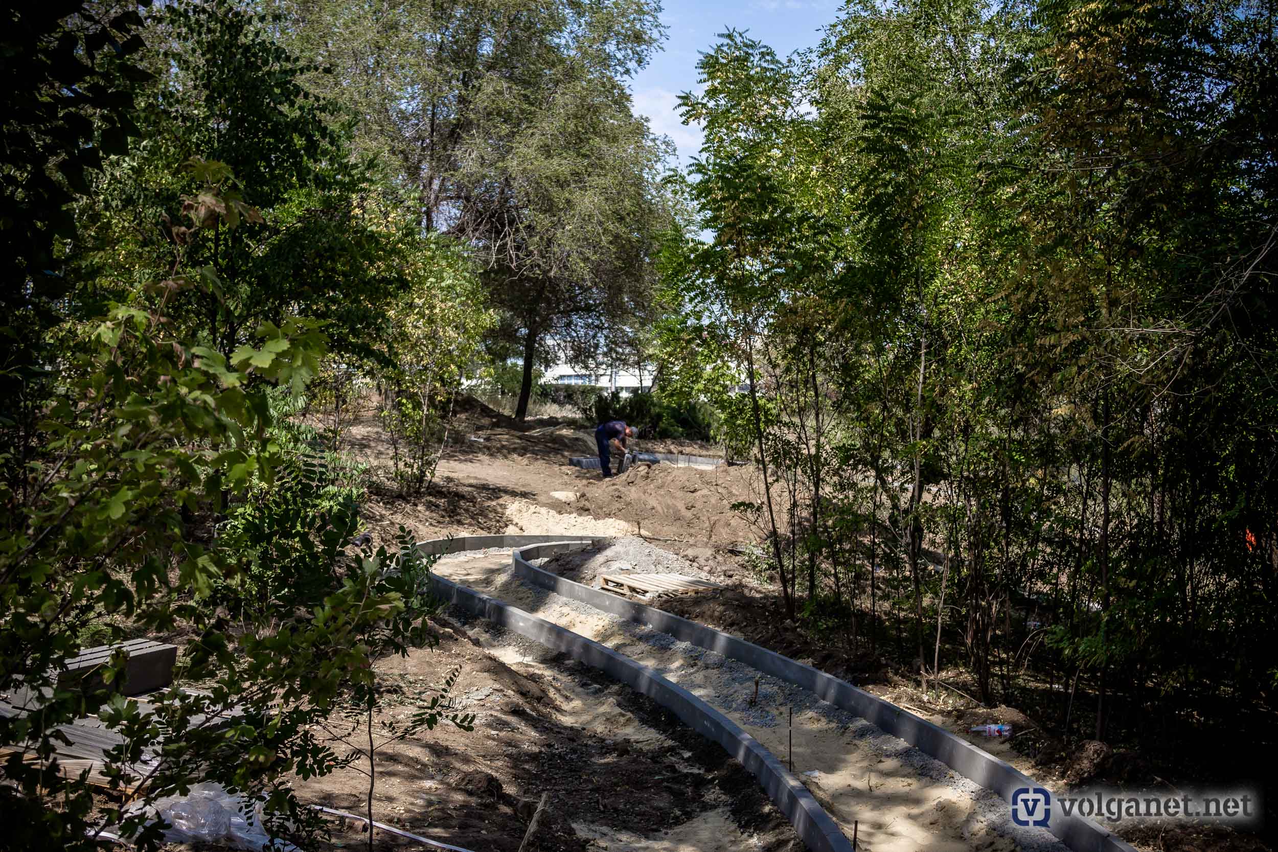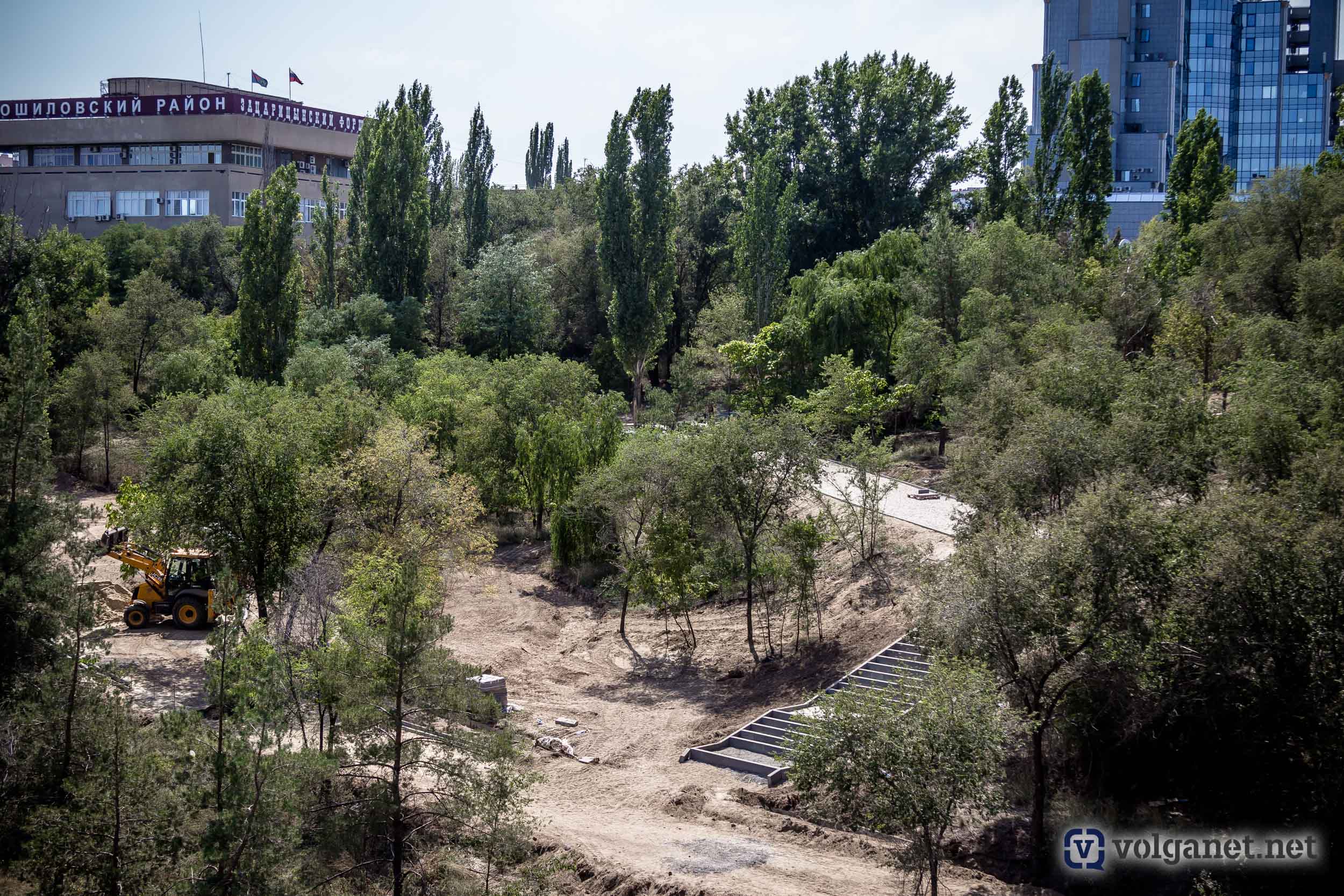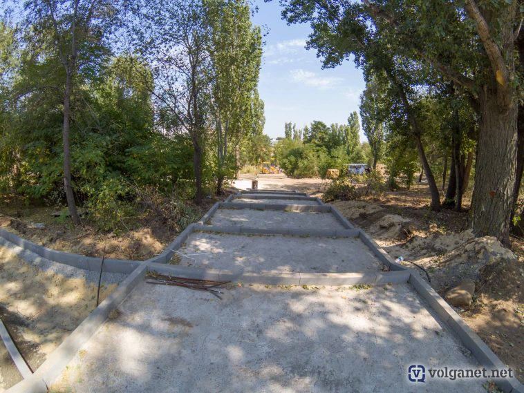 На правом склоне поймы реки Царицы кипит работа: строители разбивают дорожки и готовят площадки, которые, наконец, сделают доступным спуск в пойму со стороны Ворошиловского района. Как обещают власти, дорожки и тропинки будут не просто дорожками – их сделают с собственной «фишкой».