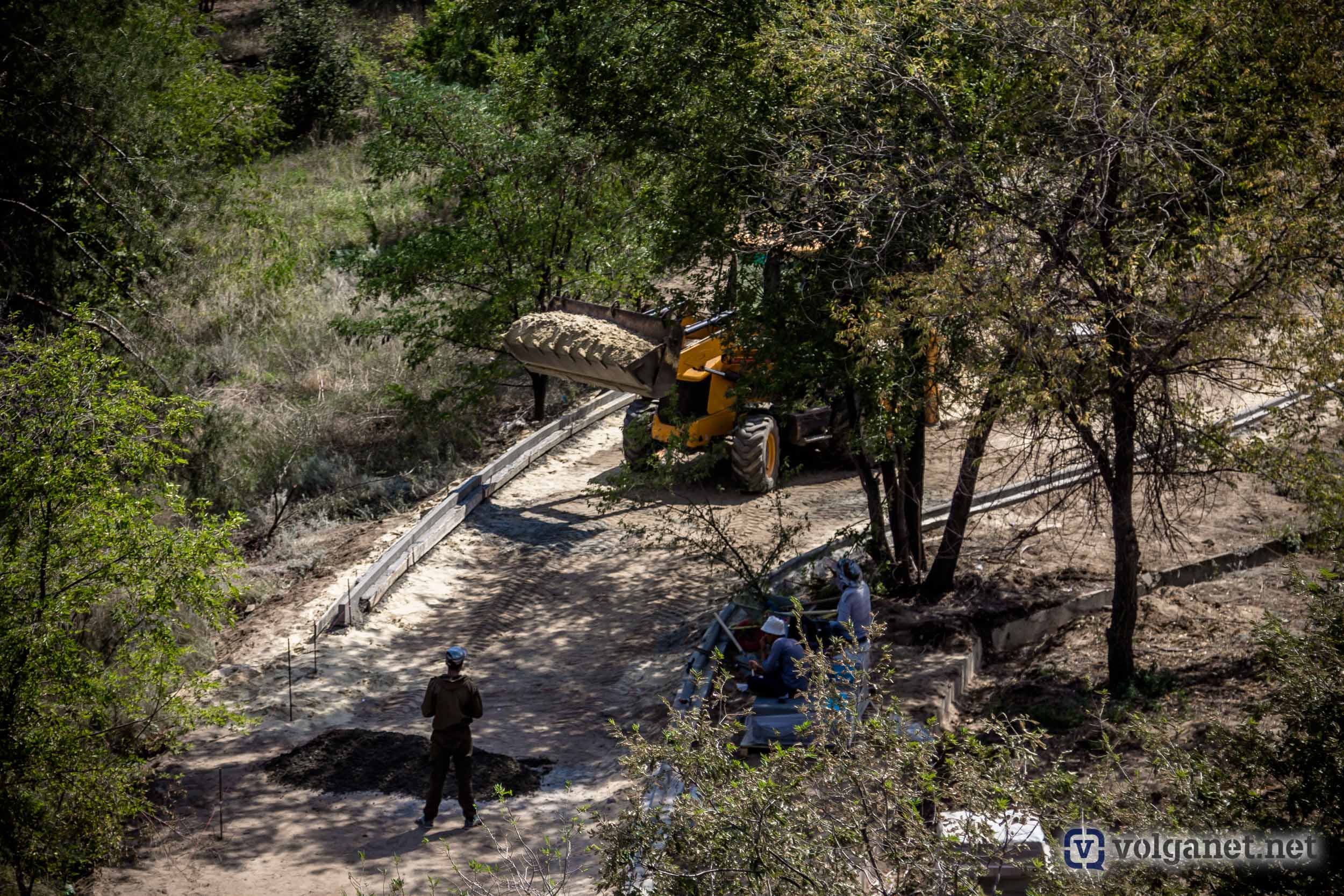 На правом склоне поймы реки Царицы кипит работа: строители разбивают дорожки и готовят площадки, которые, наконец, сделают доступным спуск в пойму со стороны Ворошиловского района. Как обещают власти, дорожки и тропинки будут не просто дорожками – их сделают с собственной «фишкой».