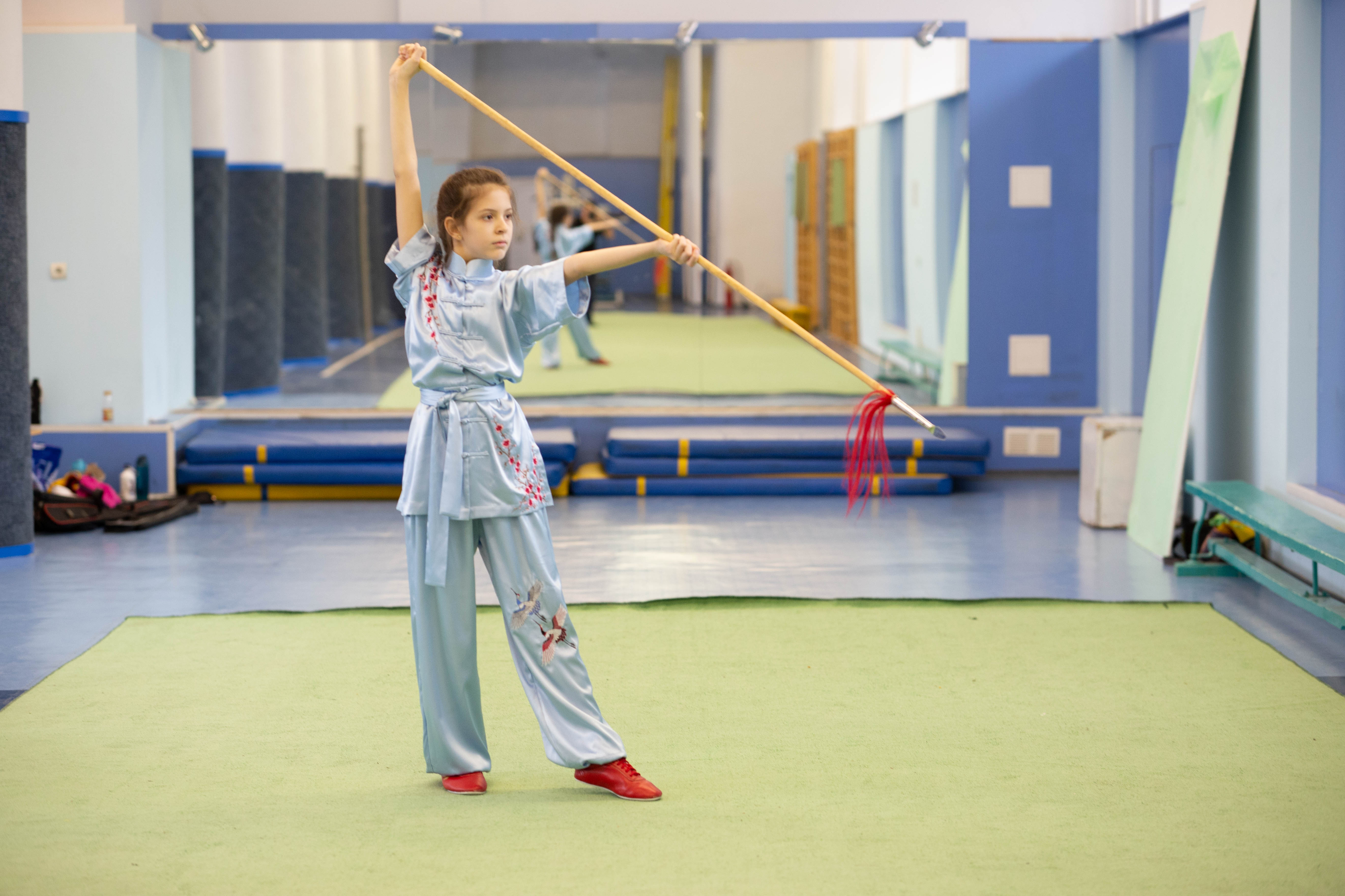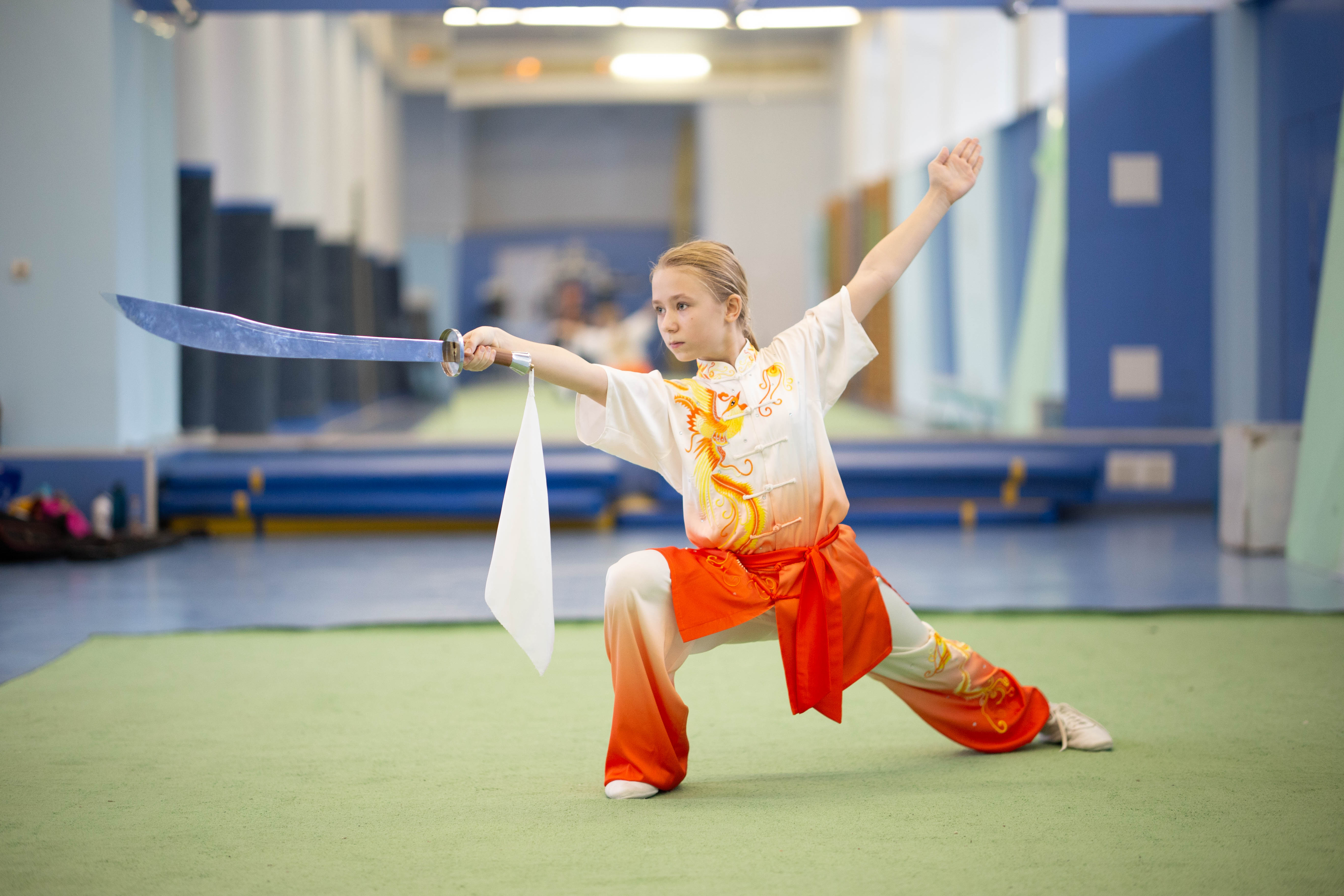 Но если говорить о соревнованиях, то там детям нужен костюм из шёлка. Хотя на начальном этапе дети, в основном, выступают в атласных костюмах из искусственного шёлка, потому что он дешевле, и нет смысла покупать дорогой костюм — ребёнок же вырастет через полгода… Ну и оружие. То есть, тренировочная одежда, костюм для соревнований и оружие – это всё, что надо.