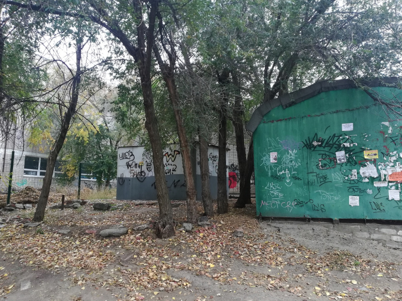 Так, путь детей к школе №46 лежит по грунтовой автомобильной дороге через овраги и заросли деревьев, а буквально в десяти метрах от школьного забора расположено заброшенное полуразрушенное строение. Бывшая подстанция в таком виде существует уже более десятка лет. Войти туда может каждый желающий – вход в строение свободный. Бутылки, мусор, шприцы… такой ассортимент украшает пол «заброшки».