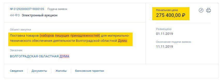 На этот раз услуги поставщиков понадобились депутатам Волгоградской областной думы. Так, в рамках материально-технического обеспечения областной парламент планирует закупить наборы пишущих принадлежностей.