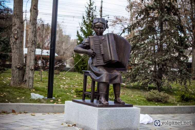 Месяц назад на набережной появилась скульптурная композиция памяти художника Виктора Лосева. Рисующего творца в бронзе изобразил известный волгоградский скульптор Сергей Щербаков. А сегодня в новом сквере, созданном в честь Александры Пахмутовой, открыли ещё одну его скульптуру – «Девочка с аккордеоном».