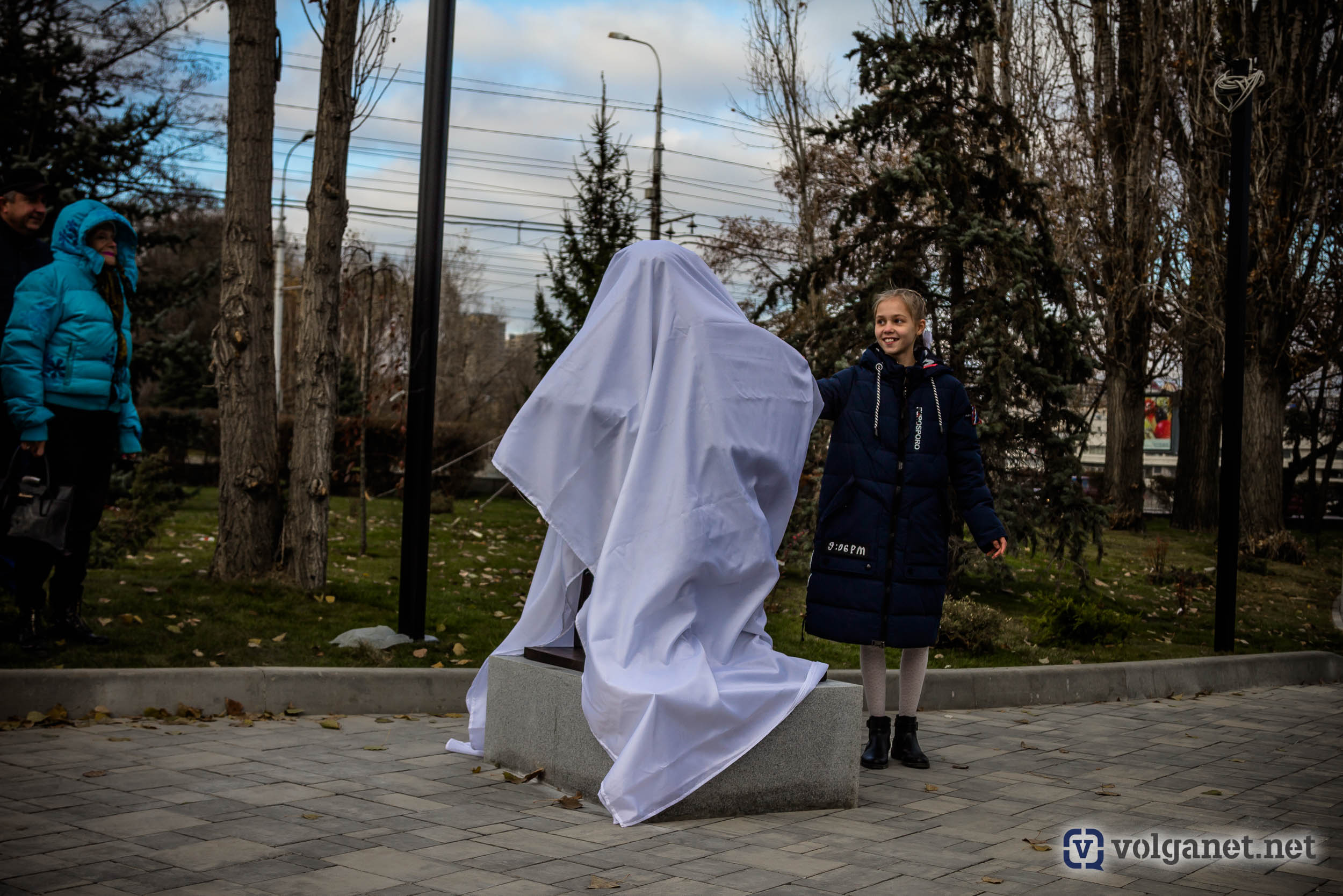 Месяц назад на набережной появилась скульптурная композиция памяти художника Виктора Лосева. Рисующего творца в бронзе изобразил известный волгоградский скульптор Сергей Щербаков. А сегодня в новом сквере, созданном в честь Александры Пахмутовой, открыли ещё одну его скульптуру – «Девочка с аккордеоном».