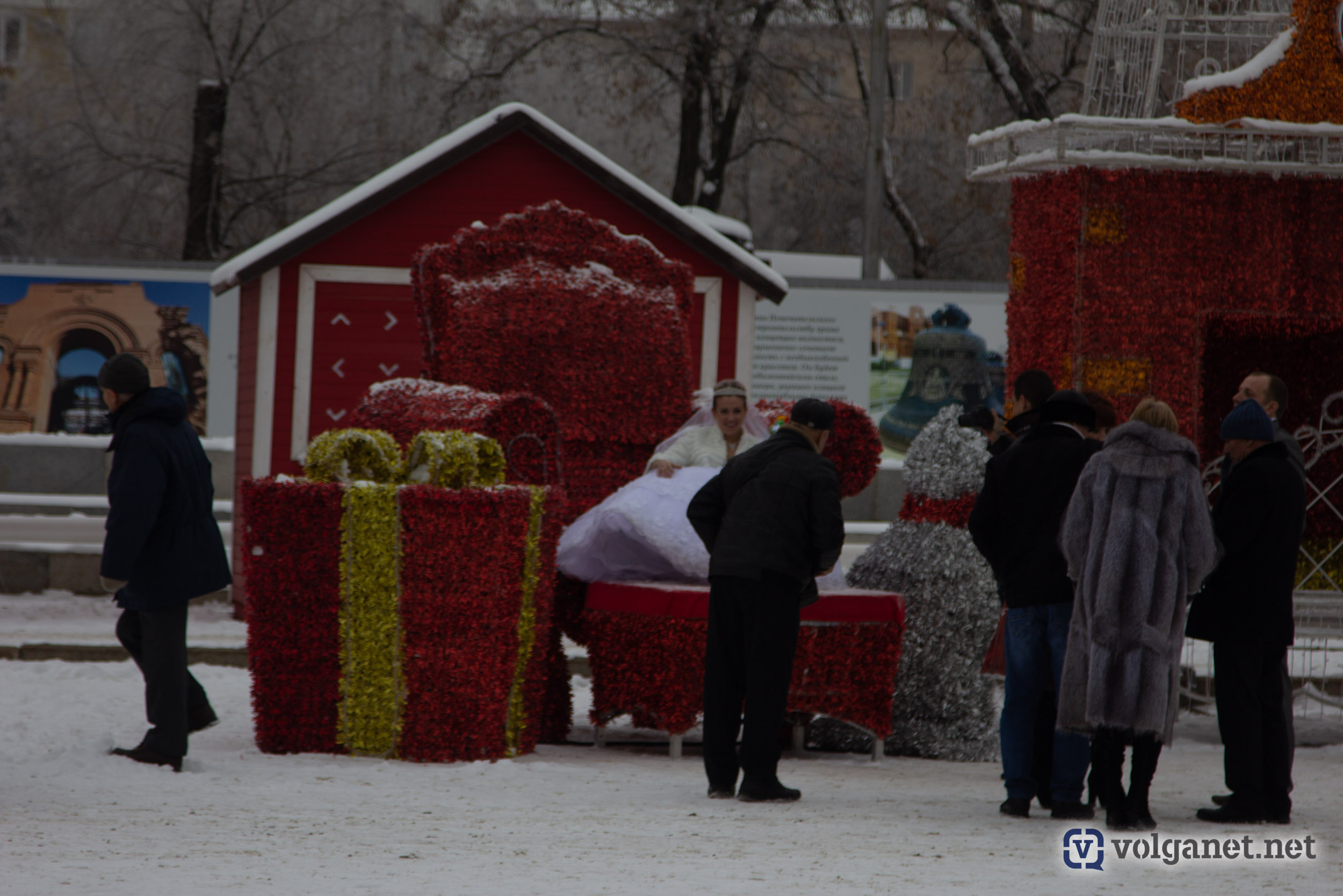 На «Современнике», у памятника стрельцам-основателям Царицына, поставят две ёлочки, разложат «подарки» и повесят надпись «С Новым годом!».