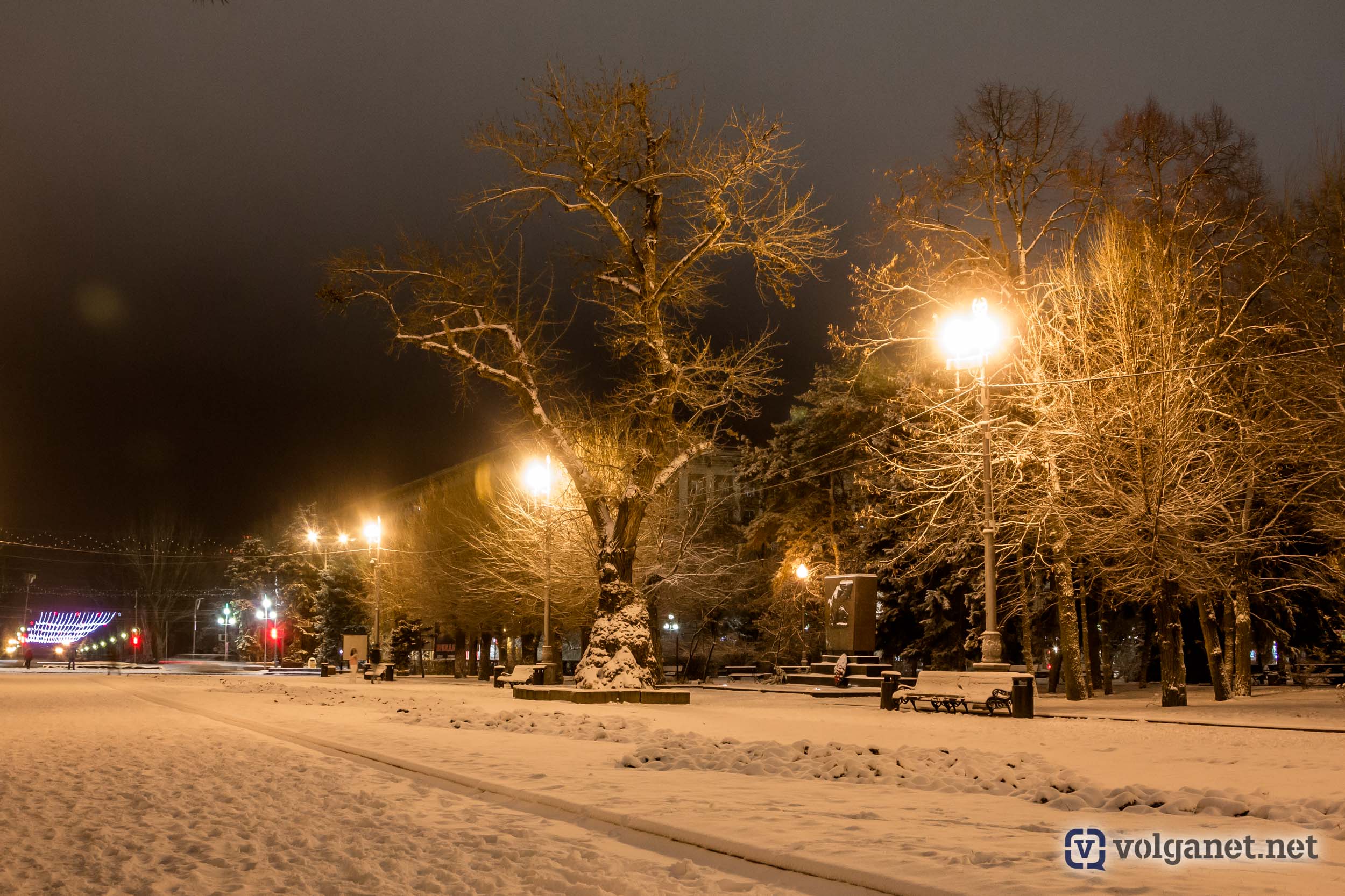 Вечером 3 декабря в Волгограде выпал первый снег. Причём зимние осадки сразу создали покров в 5-6 сантиметров толщиной. Пропустить это событие фотограф Volganet.net Алексей Копаев никак не мог. Он отправился за «вкусными» картинками зимнего города.