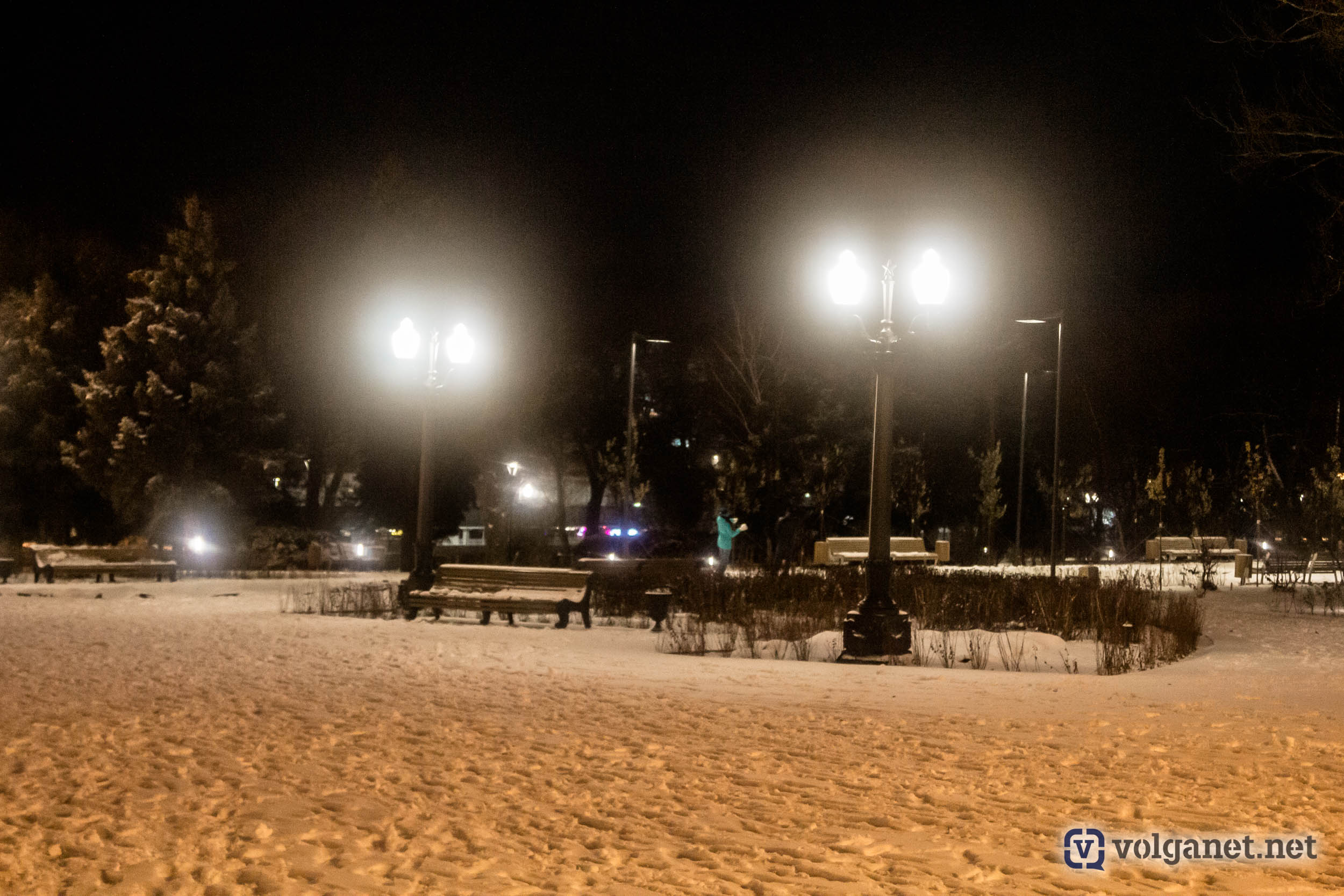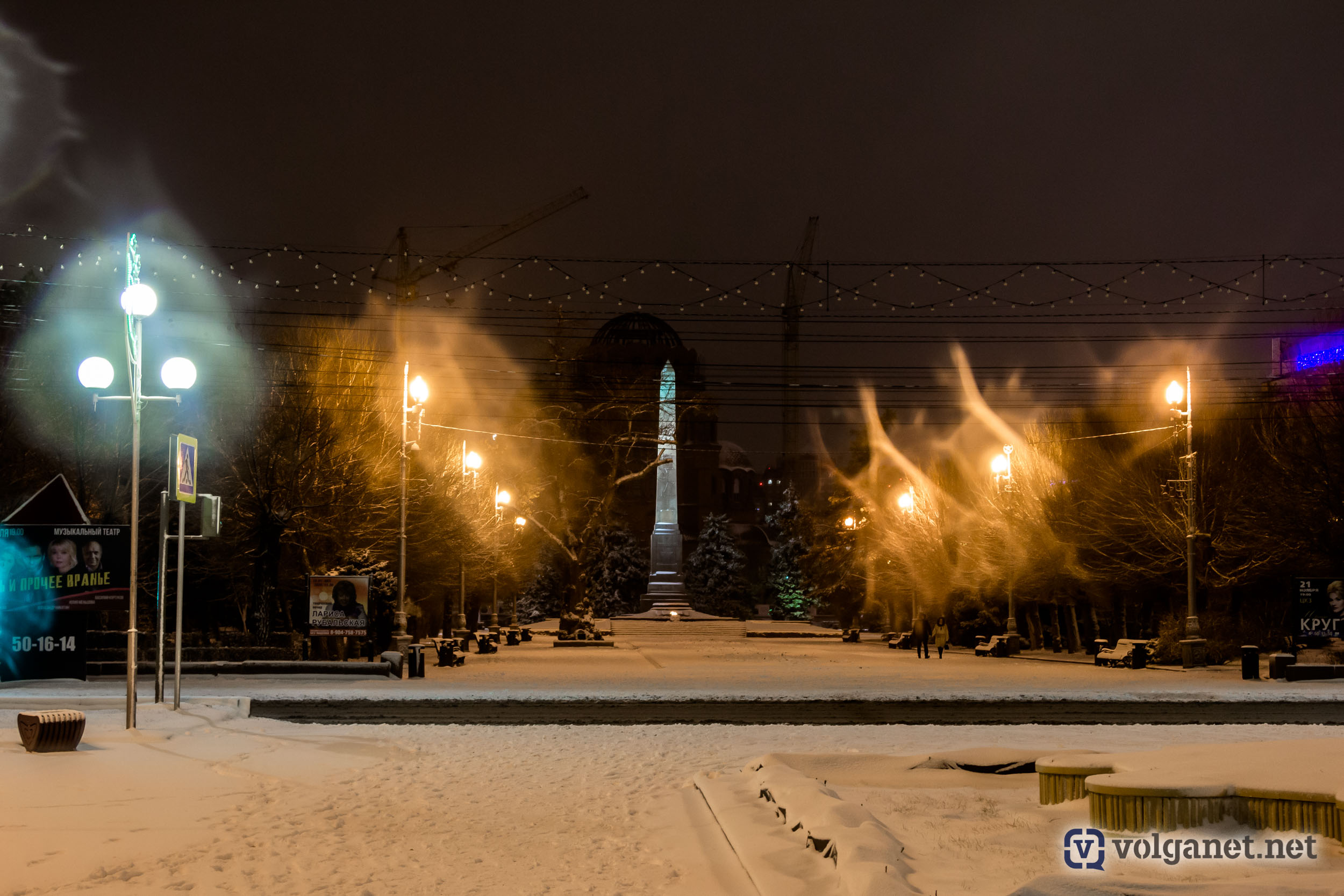 Многие горожане вышли на вечернюю прогулку, чтобы насладиться хорошей погодой. Несмотря на снегопад, на улице было тихо и тепло. Такая «классическая» зима в Волгограде, увы, большая редкость.