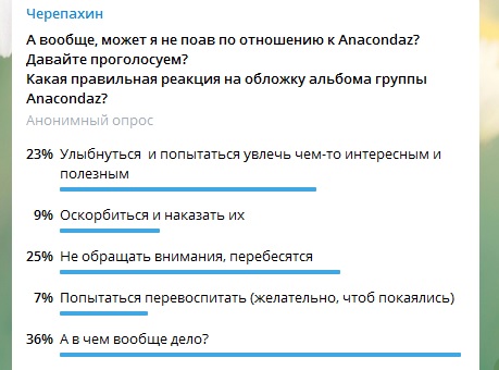 Кстати, Черепахин даже запустил голосование, в котором каждый мог высказать свою позицию относительно такого нестандартного художественного решения.