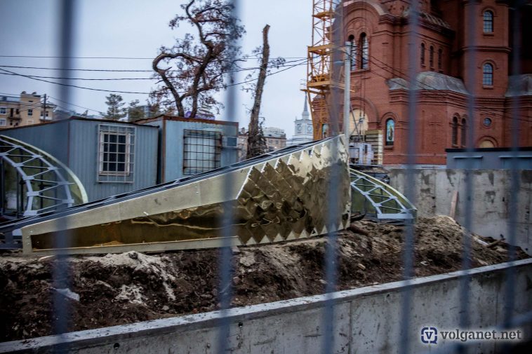 Рядом с площадью Павших борцов, которую в этом году лишили статуса главной новогодней площадки, продолжаются работы над собором Александра Невского. Специалисты монтируют главный купол. Работы должны завершиться к концу декабря.