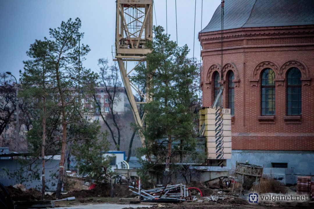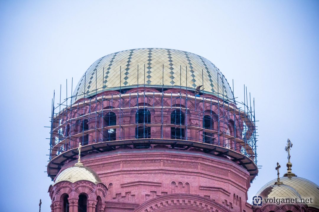 На сегодняшний день высота «тела» собора уже достигла 42 метров, строителям осталось возвести ещё 10 метров. Полностью готов лишь барабан центрального купола — на него и монтируют «лепестки» конструкции, которые доставили в Волгоград из Волгодонска.