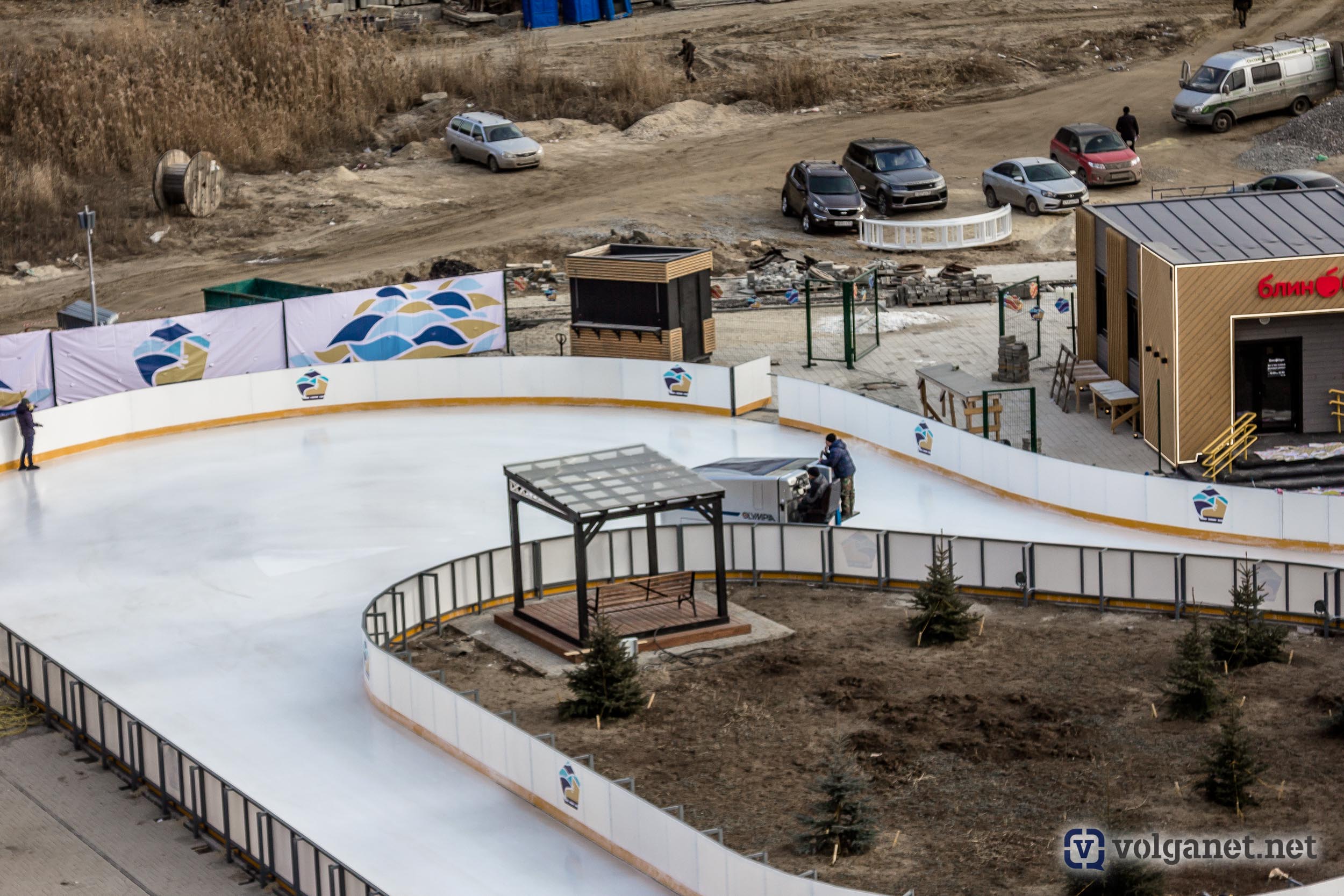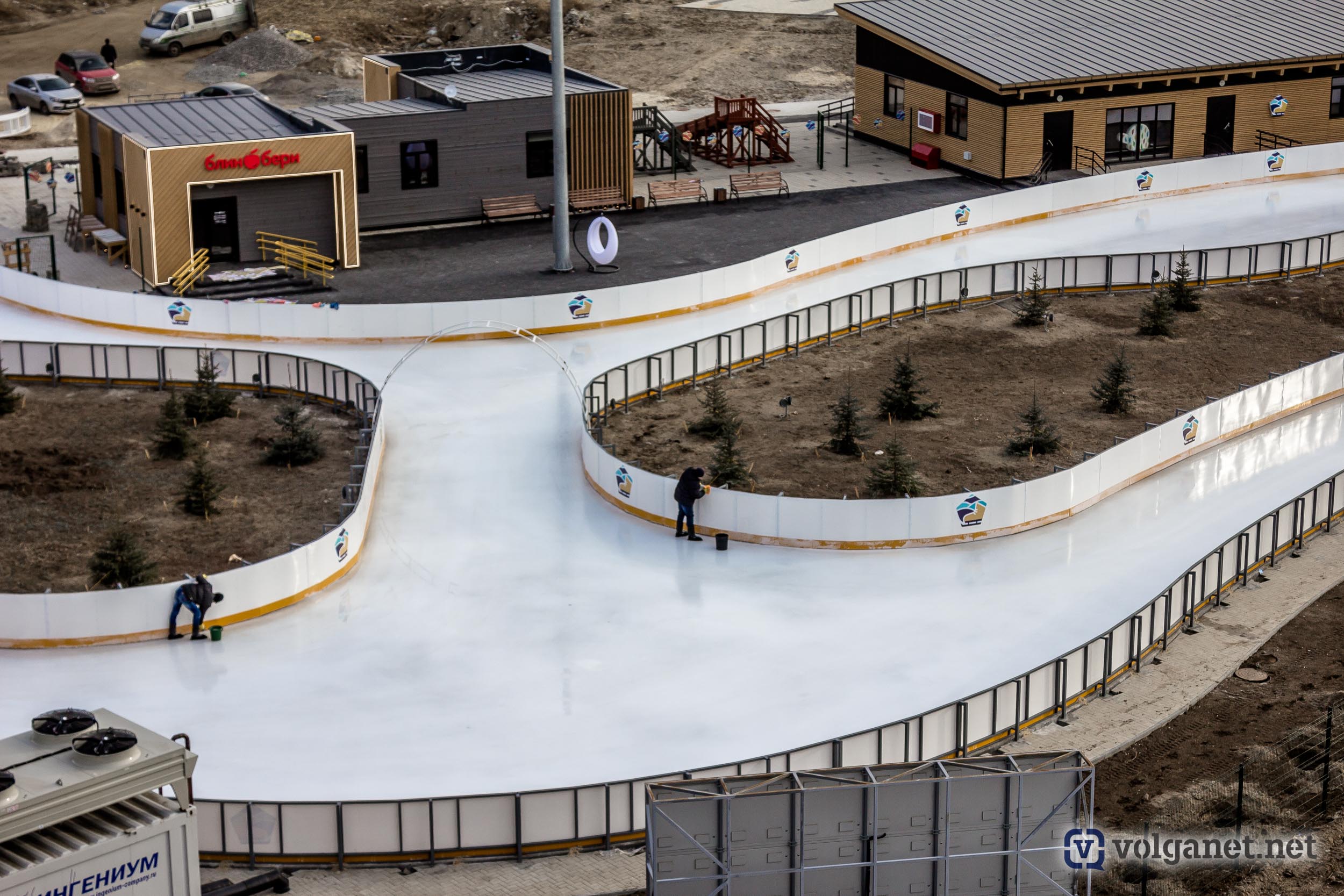 Добавим, что в основании катка вмонтировано специальное холодильное оборудование, так что лёд не должен таять и при нулевой температуре.