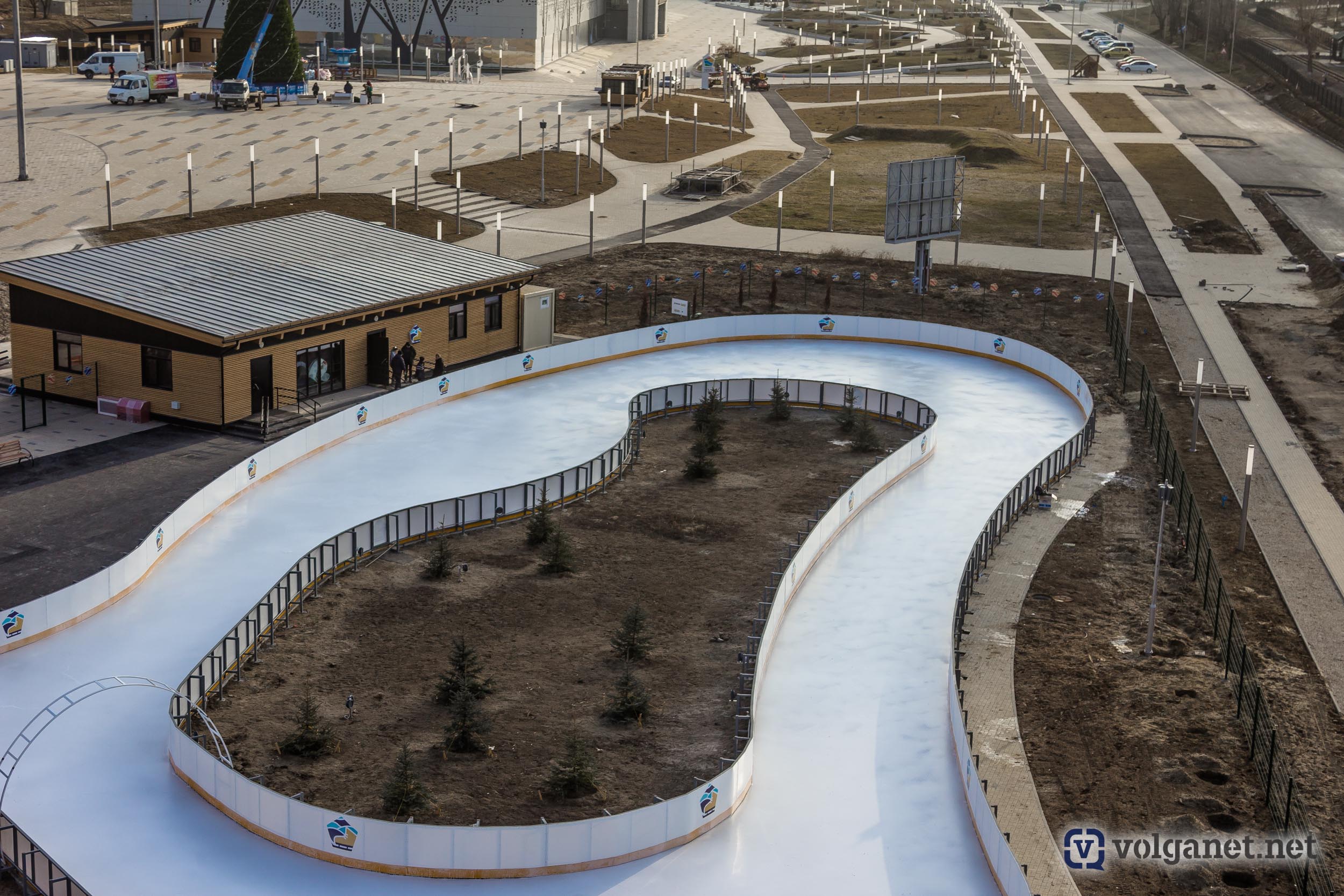 Почти год жители Волгограда ожидали открытия самого большого искусственного катка в пойме реки Царица. И вот уже сегодня вечером, 26 декабря, он заработает – правда, пока в техническом режиме.