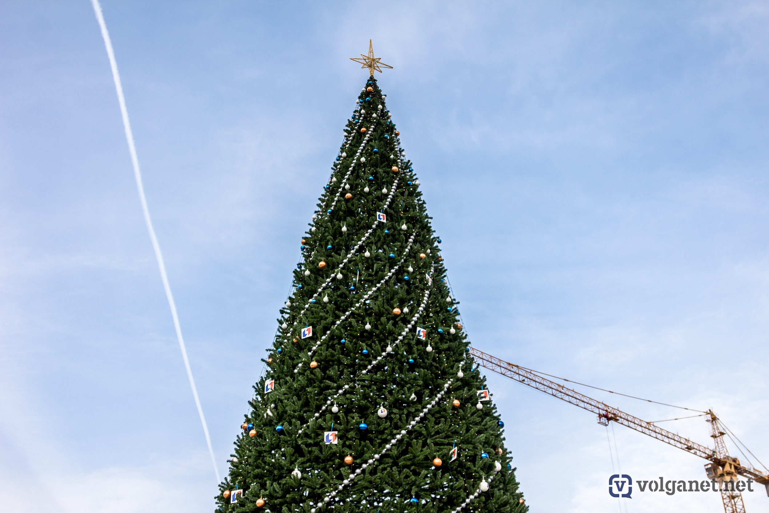 Нарядили в пойме реки Царица и главную ёлку города. Её, как и обещали в мэрии, украсили сотни цветных шаров и светящихся гирлянд.