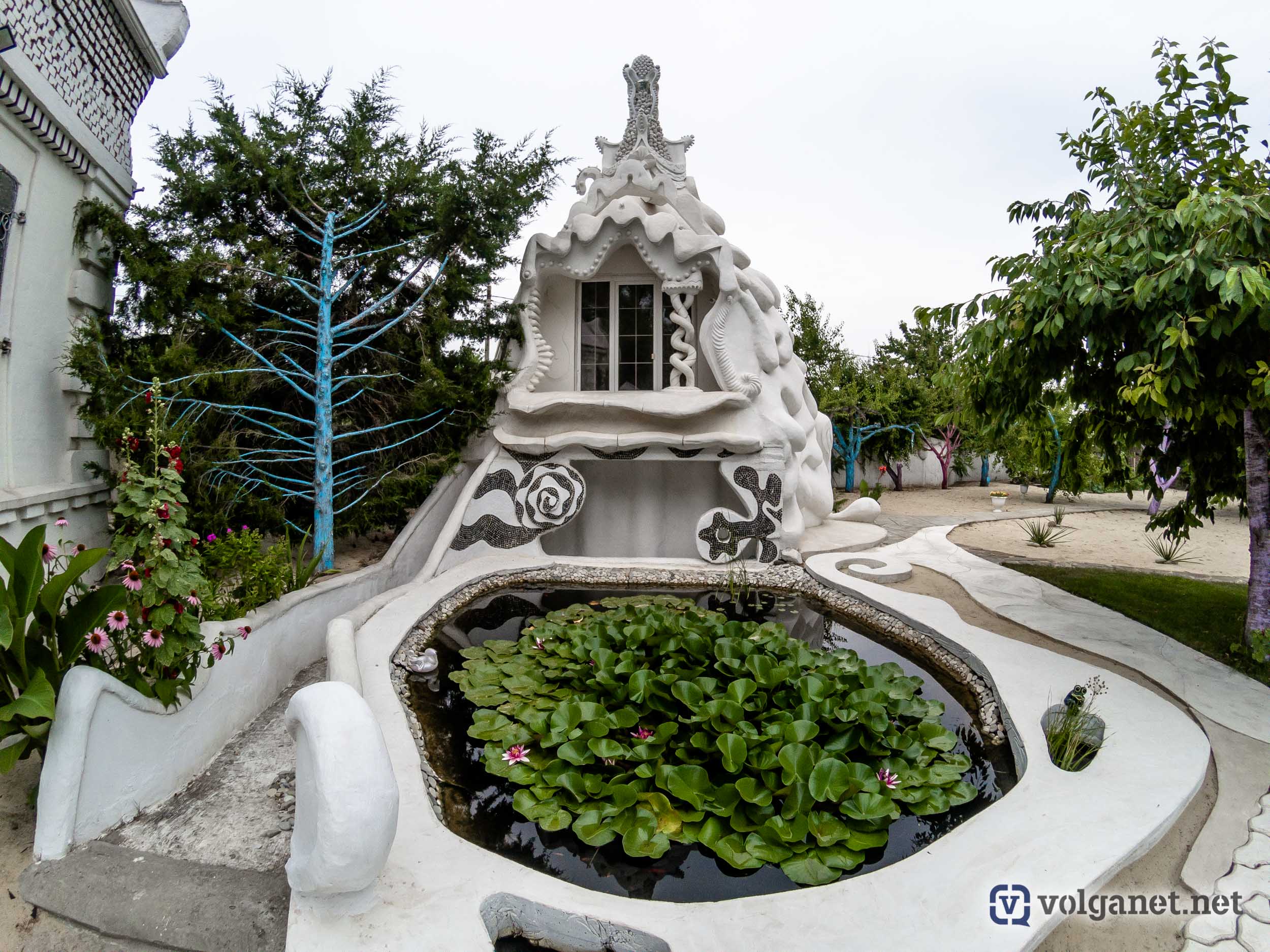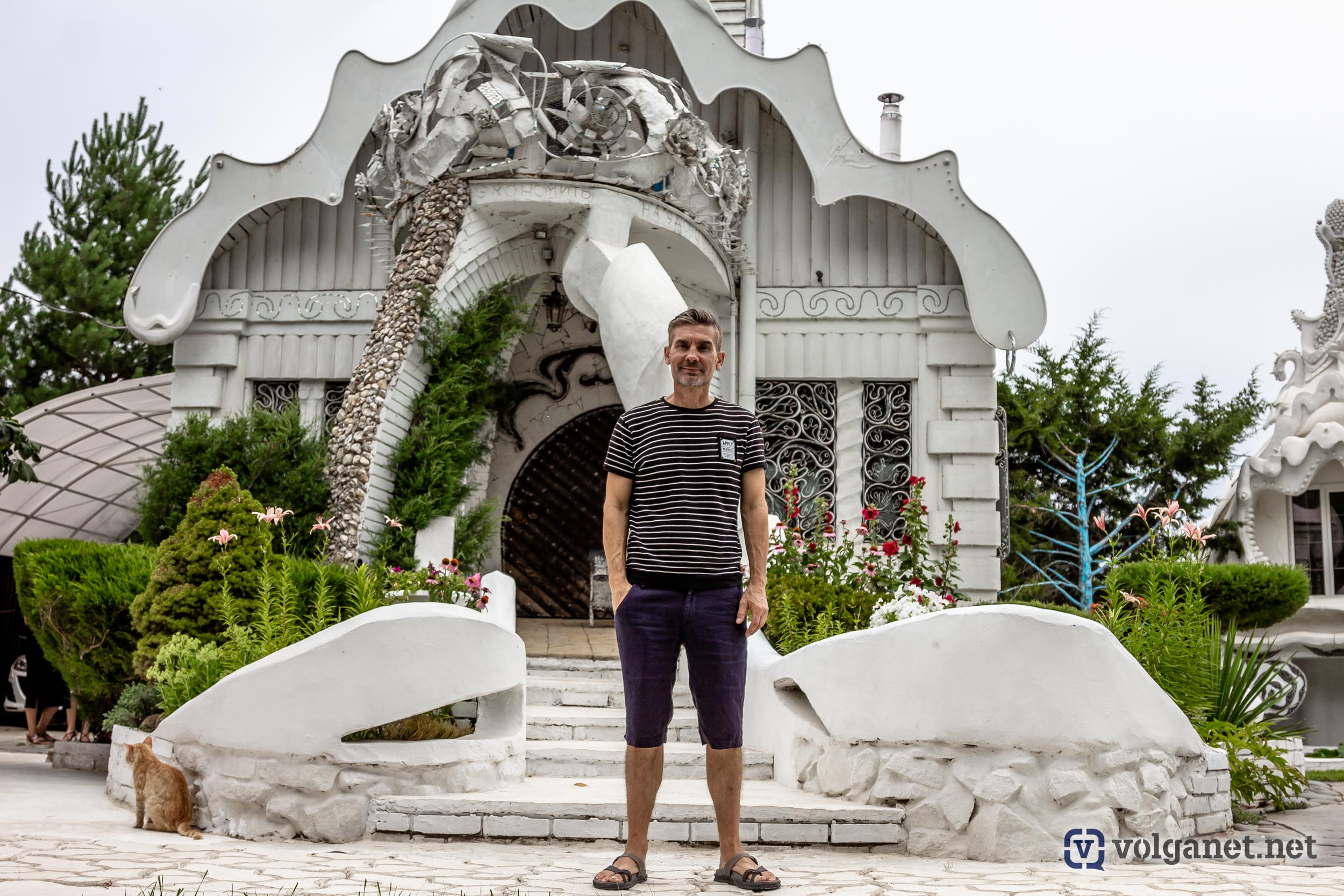 Располагается волгоградское чудо архитектуры в одноимённом посёлке на правом берегу Волги, в Среднеахтубинском районе – в посёлке Сахарный. Радушно встречающий нас хозяин признаётся честно, что гости у него бывают часто. Почти каждый день его осаждают любопытствующие, мечтающие сделать снимок рядом с таким диковинным домом.
