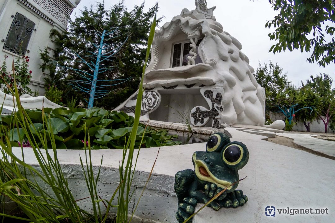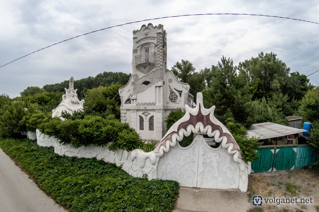 Располагается волгоградское чудо архитектуры в одноимённом посёлке на правом берегу Волги, в Среднеахтубинском районе – в посёлке Сахарный. Радушно встречающий нас хозяин признаётся честно, что гости у него бывают часто. Почти каждый день его осаждают любопытствующие, мечтающие сделать снимок рядом с таким диковинным домом.