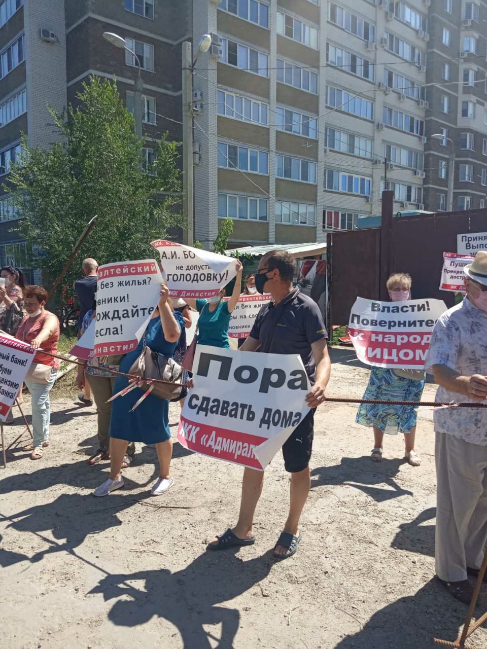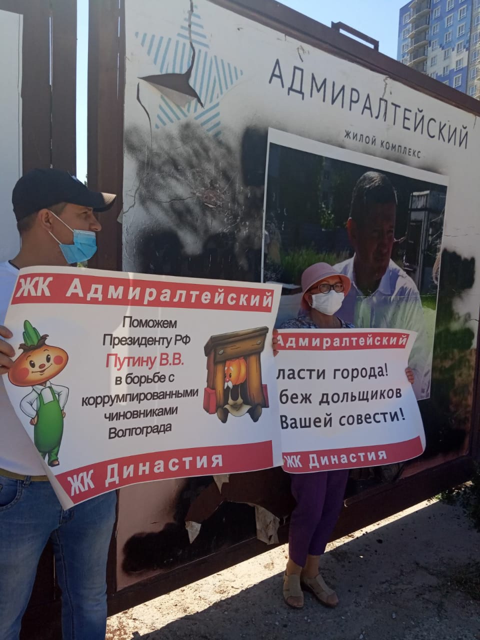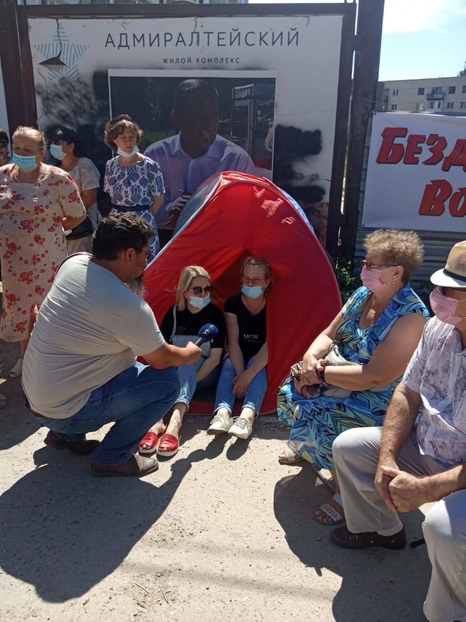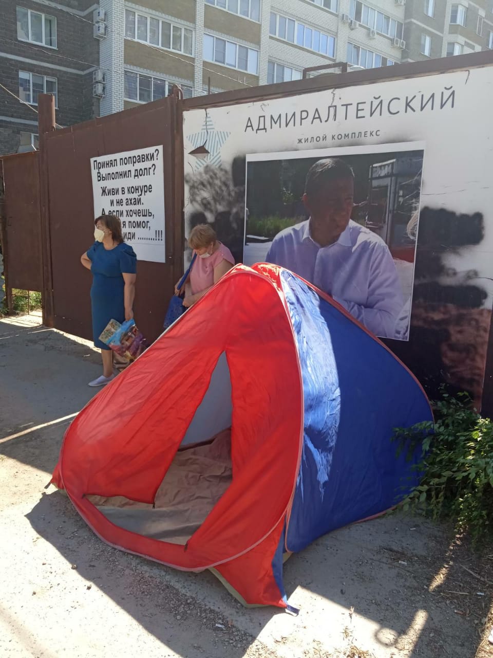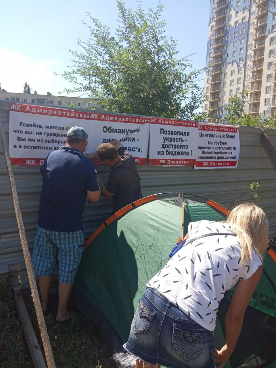 Накануне дольщики ЖК «Адмиралтейский» собрались у ворот строительной площадки в Красноармейском районе, чтобы обсудить, что же делать дальше. Присоединились к товарищам по несчастью и дольщики ЖК «Династия». Некоторые, не выдержав бесконечных скитаний по съёмным квартирам, приехали с палатками, начав разбивать стихийный лагерь возле своего недостроенного дома.