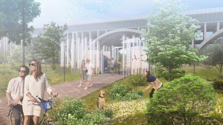 Вообще вся зона поймы, по задумке архитекторов, будет разделена на четыре функциональные зоны: это парковая часть для прогулок, спортивный блок с аквапарком для активного отдыха, а также лаунж-зоны и арт-объекты.