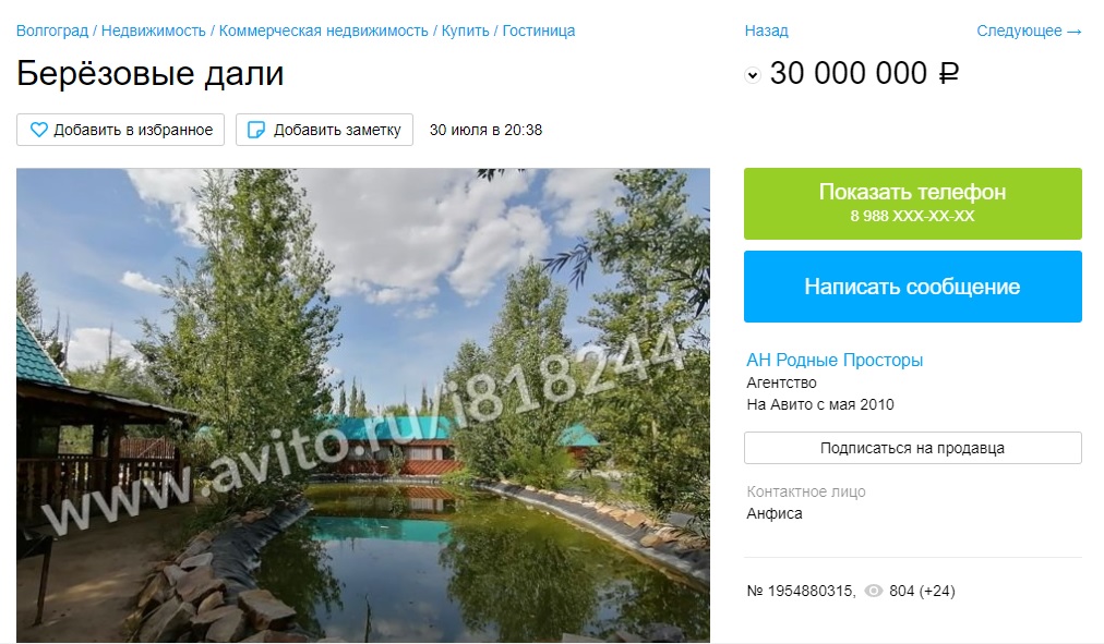Под Волгоградом, в Светлоярском районе, за 30 миллионов рублей продают базу отдыха «Берёзовые дали», на выезде из Волгограда на московской трассе – туристическо-гостиничный комплекс придорожного сервиса с АЗС «Спутник» за 50 миллионов…