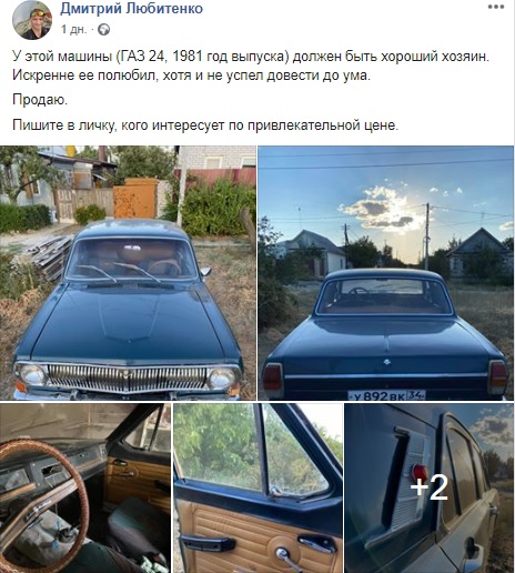 Дмитрий написал, что продаёт так полюбившуюся ему «Волгу», однако признался, что до ума довести машину не успел.