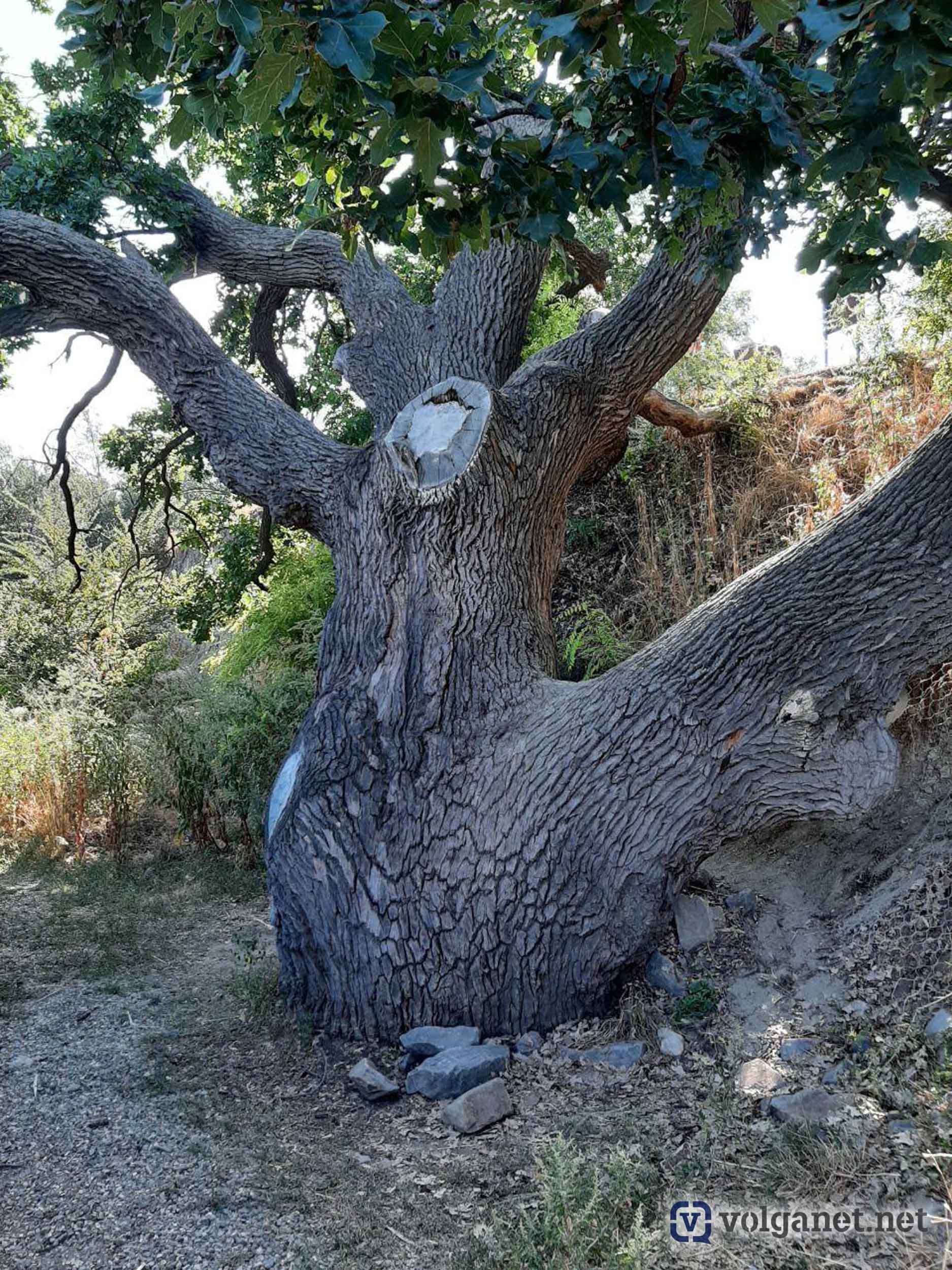 Предаваясь печальным мыслям, мы, наконец, дошли до места, где над берегом Волги возвышается дуб-патриарх. Дерево не просто поражает, оно… вселяет восторг.