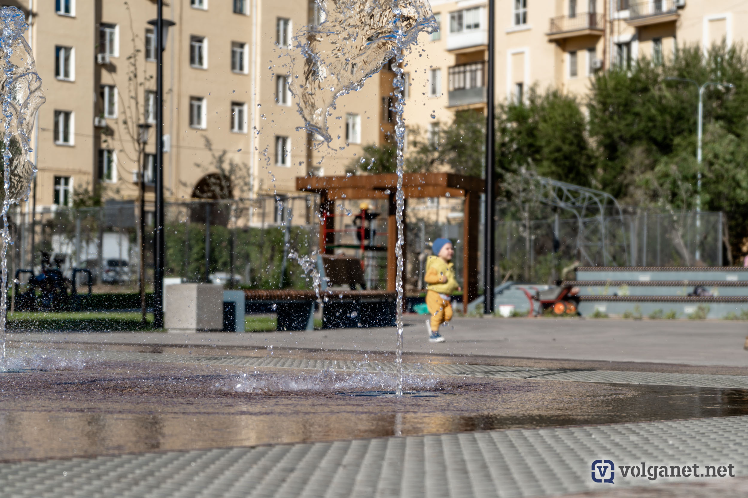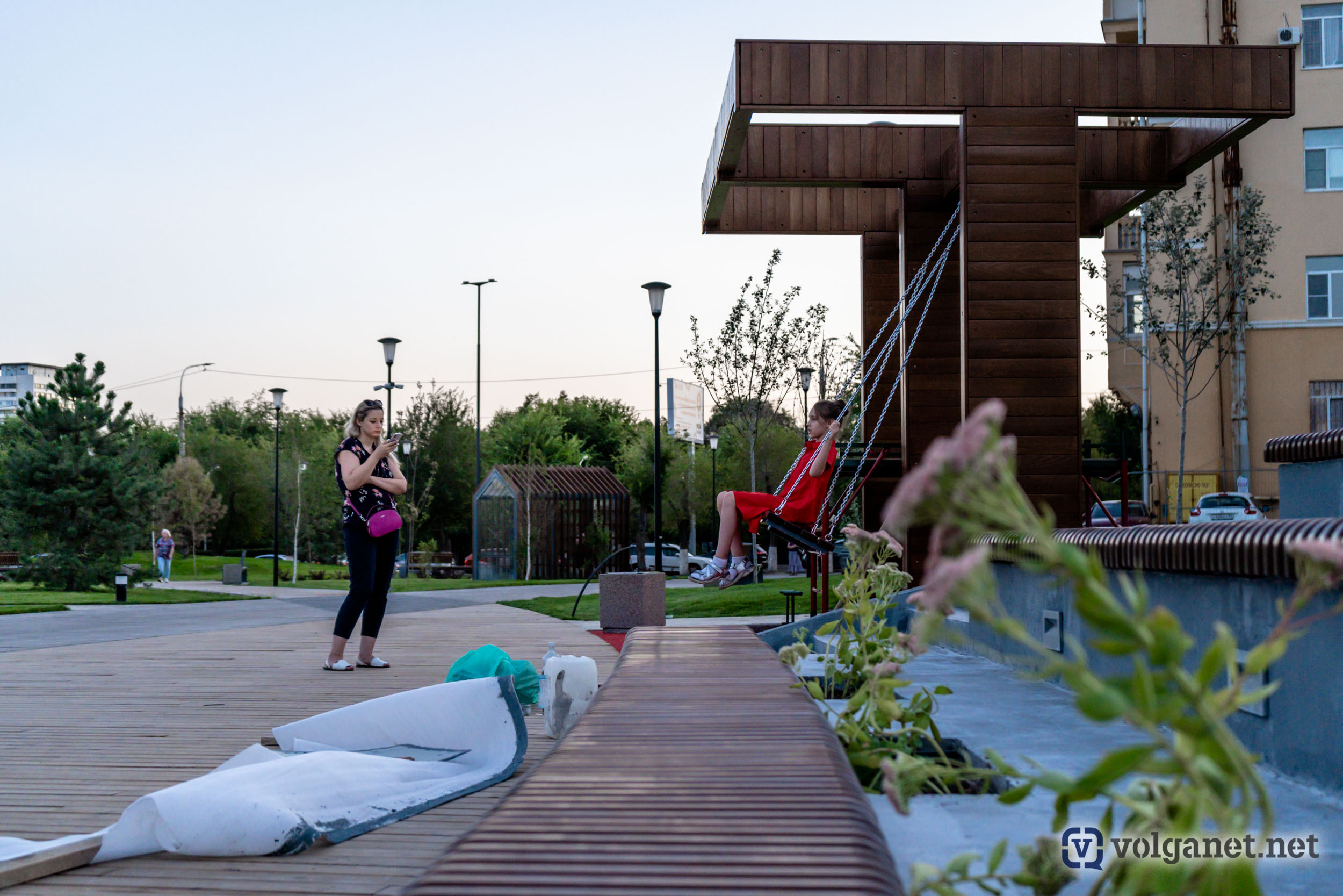 Кроме того, здесь установили скамейки, новые фонари, качели. Заработал и новый плоскостной фонтан. Но в целом работа, которой впереди очень много, продолжается.
