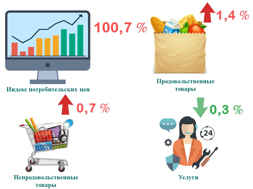 По данным ведомства, по сравнению с сентябрем в октябре индекс потребительских цен вырос, составив 100,7%. Продовольственные товары подорожали на 1,4%, непродовольственные – на 0,7%, а услуги сбавили в стоимости на 0,3%.