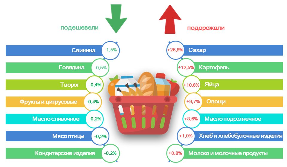 Из овощей рекордсменами удорожания стали огурцы (+27,3%), свекла (+19,5%), помидоры (+19,2%), лук (+10,5%). А морковь, чеснок и капуста, наоборот, подешевели, снижение составило от 2 до 3%.