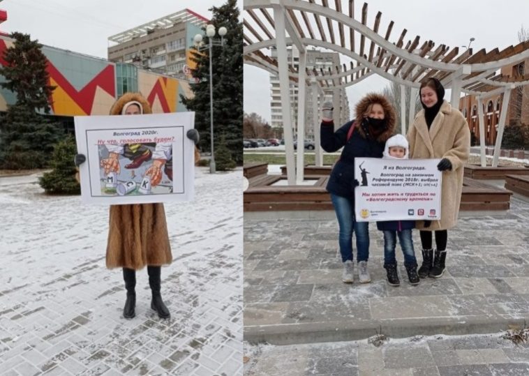 «Волгоград на законном референдуме – 2018 выбрал время. В 2020-м путем фальсификации наш выбор хотят отнять. Мы не сдаёмся!» – гласила одна надпись на плакатах митингующих.