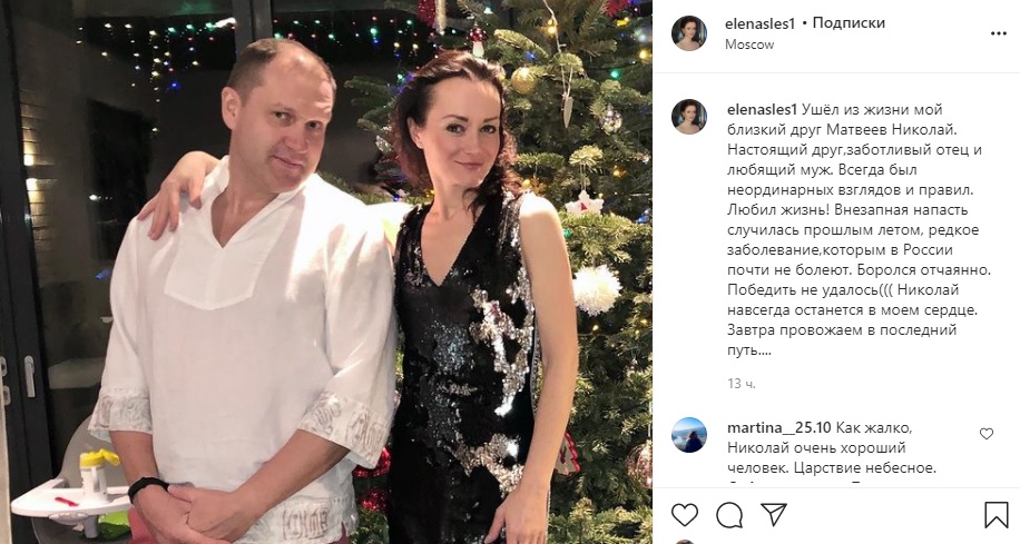 «Ушёл из жизни мой близкий друг Матвеев Николай. Настоящий друг, заботливый отец и любящий муж. Всегда был неординарных взглядов и правил. Любил жизнь! Внезапная напасть случилась прошлым летом, редкое заболевание, которым в России почти не болеют. Боролся отчаянно. Победить не удалось».