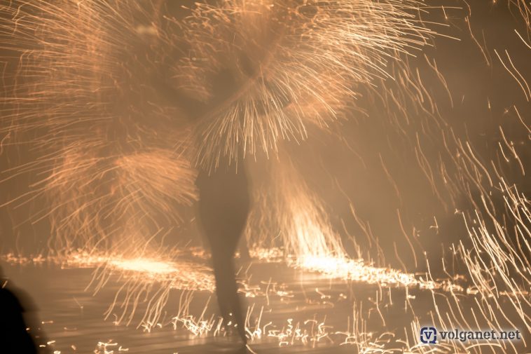Во-первых, началось шоу ещё засветло – в 17.00. Так что рождение огня было видно весьма условно. Да и, по правде говоря, видно вообще было мало что.