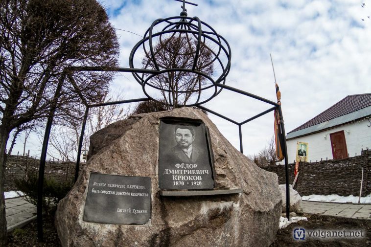 На месте, где раньше стоял дом Фёдора Дмитриевича, активисты станицы Глазуновская 10 лет назад установили мемориальный камень, рядом находится и музей Крюкова. Увы, двери музея для нас так и не открылись, поскольку акция не была согласована с местной властью. Милая женщина, поддерживающая порядок в музее, опустив глаза, сообщила: мол, пускать не велено…