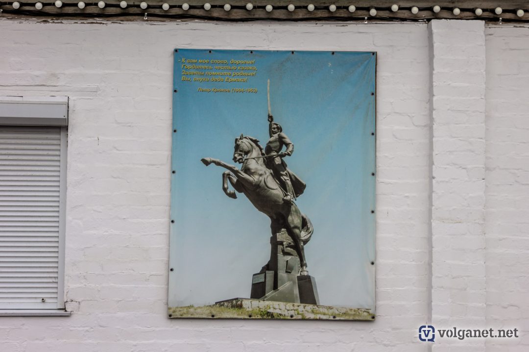 На месте, где раньше стоял дом Фёдора Дмитриевича, активисты станицы Глазуновская 10 лет назад установили мемориальный камень, рядом находится и музей Крюкова. Увы, двери музея для нас так и не открылись, поскольку акция не была согласована с местной властью. Милая женщина, поддерживающая порядок в музее, опустив глаза, сообщила: мол, пускать не велено…