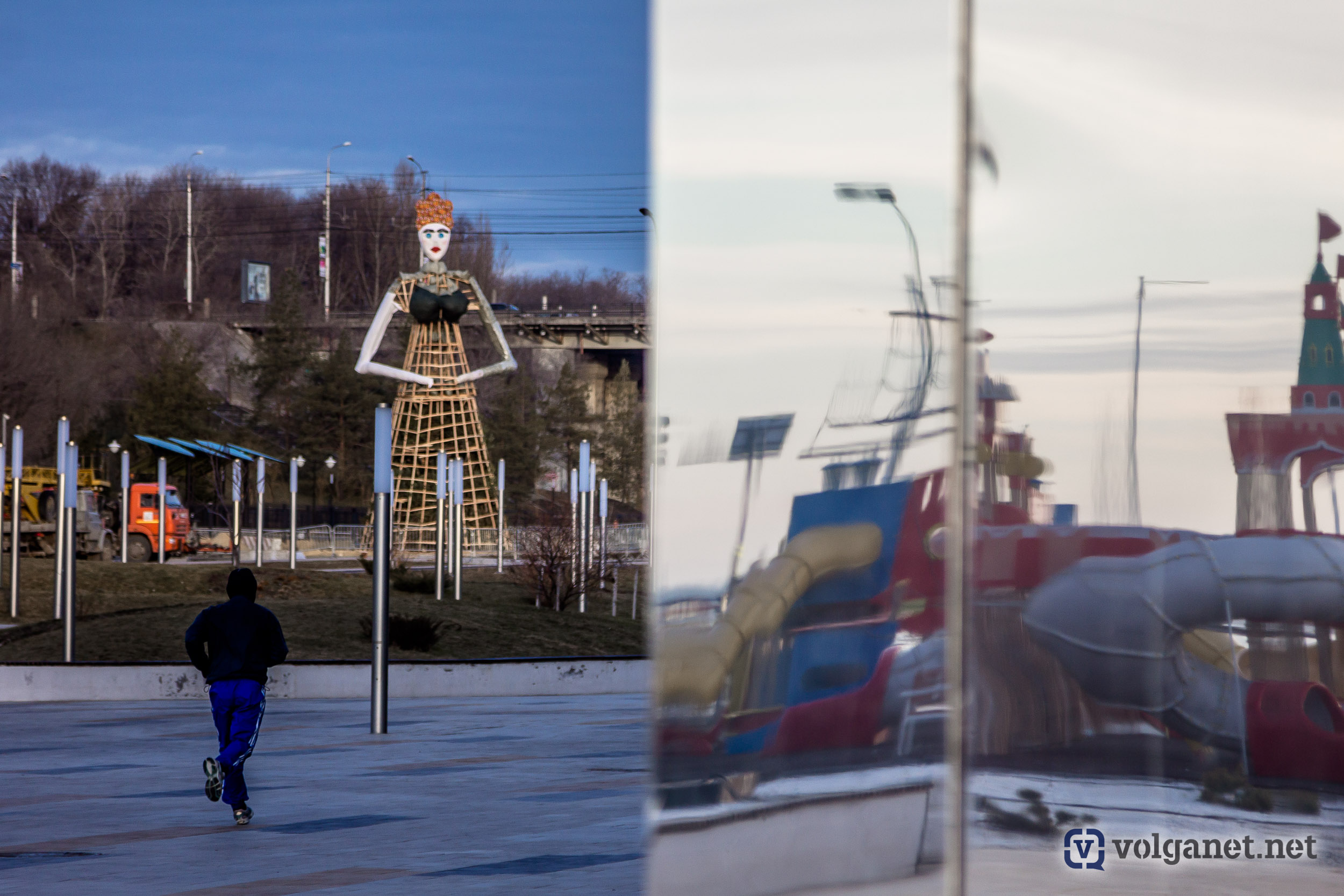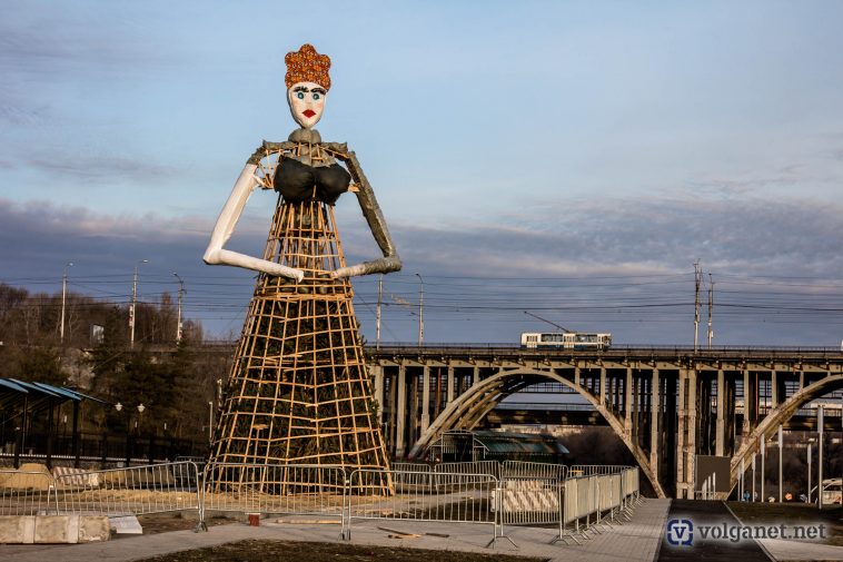 До одного из самых любимых народных праздников – Масленицы – осталось всего три дня. Пока волгоградцы объедаются блинами, на площадке возле интерактивного музея готовят для сожжения гигантское чучело, которое, к слову, может стать самым высоким в России. Корреспонденты Volganet.net отправились в пойму, чтобы посмотреть, как идёт монтаж главного персонажа праздника.