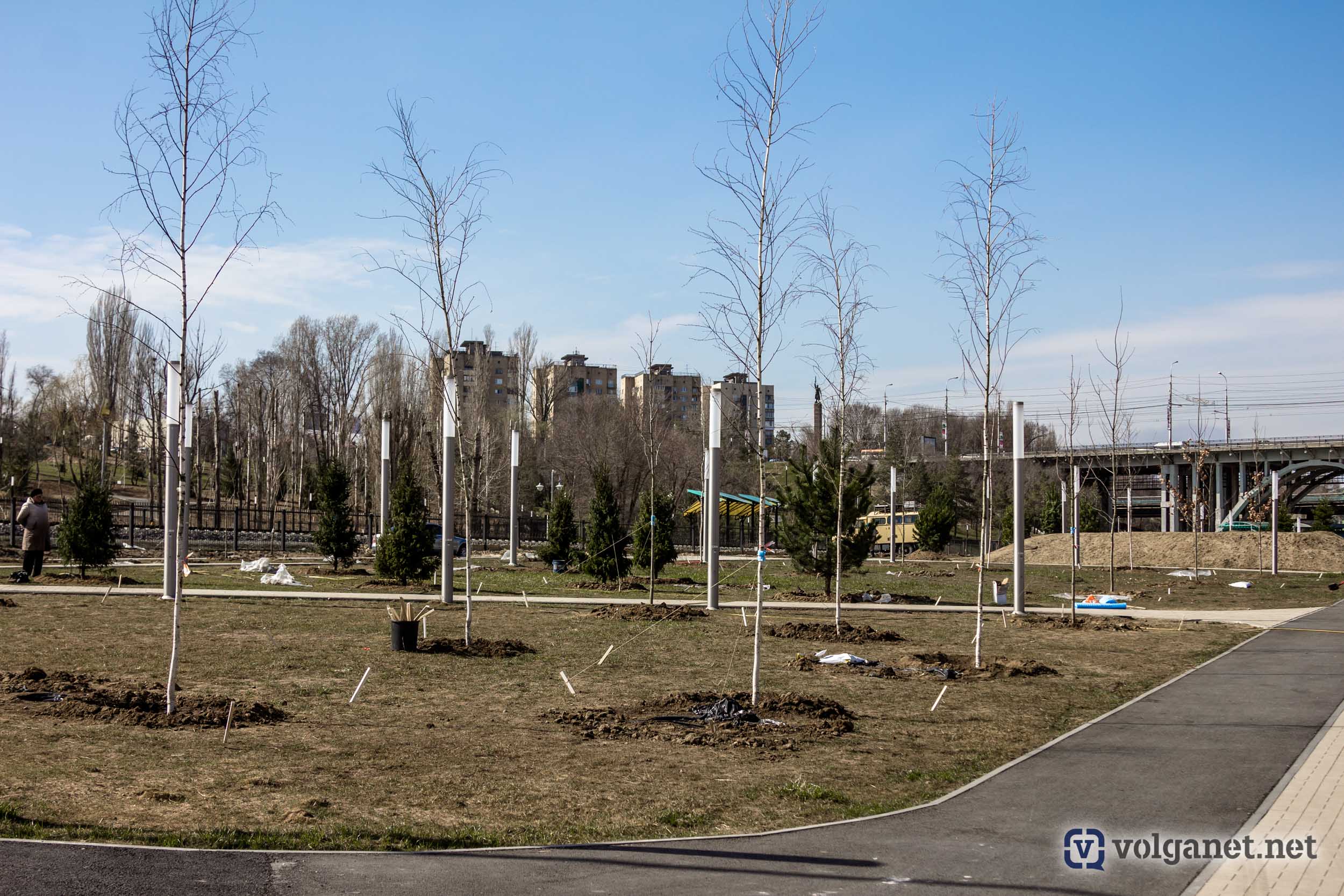 Как рассказал Volganet.net директор парка «Раздолье» Андрей Еркин, в пойме уже зеленеет 23 сосны обыкновенные, 10 чёрных сосен, 5 сербских и 6 обыкновенных елей. Вскоре должны отрастить листочки 22 липы, 7 красных клёнов и 9 красных дубов.
