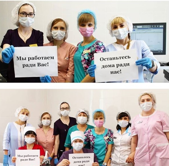 «Мы работаем ради вас – оставайтесь дома ради нас» – врачи и медсёстры Волгоградской областной больницы скорой медицинский помощи №25 Волгограда присоединились к флешмобу планетарного масштаба. На странице клиники в Instagram они разместили фото с самыми популярными сейчас фразами. Медики призывают людей помочь им, при этом ничего не делая – просто оставаясь дома.