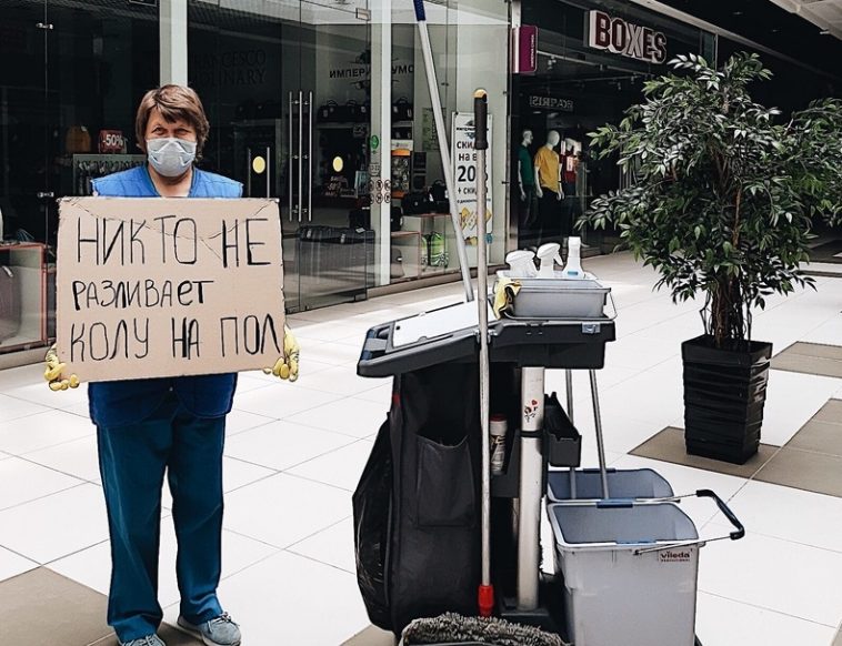 Снимки выглядят действительно трогательно и печально. Волгоградцам предложили выбрать самое классное фото. Приз зрительских симпатий получила милая женщина из клининговой службы с табличкой «Никто не разливает кока-колу на пол».