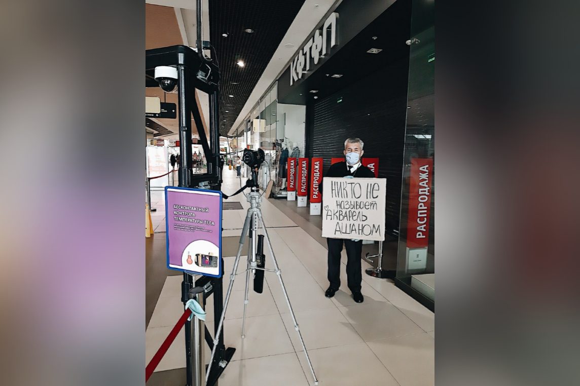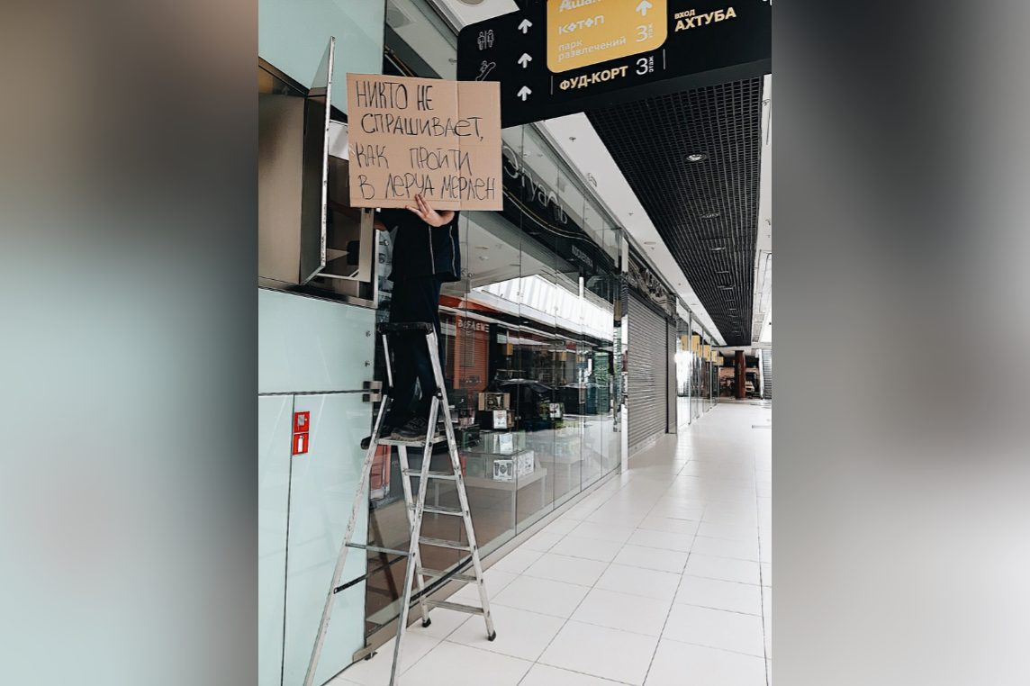 «Никто не разливает кока-колу на пол», «Никто не просит прокатить», «Никто не называет «Акварель» «Ашаном», – с такими и другими подобными табличками снялись работники ТРЦ в пустующем центре. Снимки импровизированного флешмоба появились на странице торгового центра в социально сети ВКонтакте.