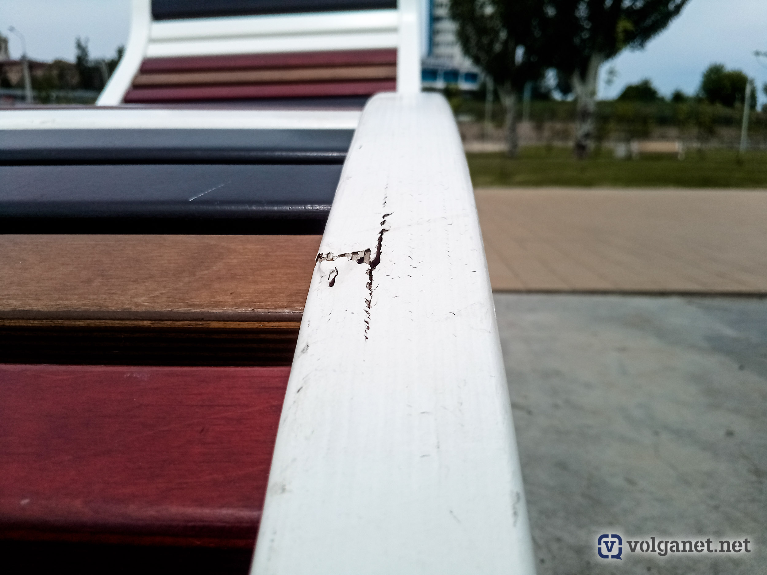 Производитель мебели, небезызвестная компания «Красота под ногами», видимо, не убедилась в качестве своего продукта, раз он не прослужил и одного сезона. Тем более удивляют возникшие дефекты, если учитывать, что во время режима самоизоляции пользоваться парковой мебелью было запрещено. Но факт остаётся фактом.