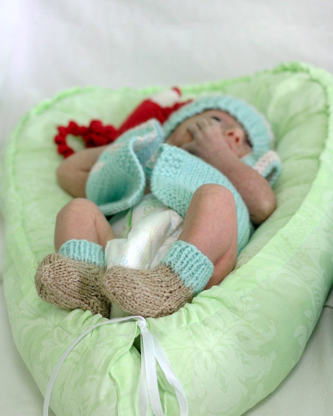 Гнёздышки как бы фиксируют тело крохи, создавая у него ощущение, что он до сих пор в утробе матери. Шерстяные вещи сохраняют тепло, а кувеза поддерживает нужную влажность. Всё это помогает ребёнку набирать вес и расти.